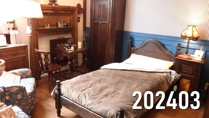 繊細な彫刻が目を引く気品漂うコールボックスやトラー材特有の縞模様がレトロ感たっぷりのドレッシングテーブルなど、アンティーク家具・ヴィンテージ家具を15点とアンティーク風リプロダクション家具のロッキングチェアを1点掲載しました。