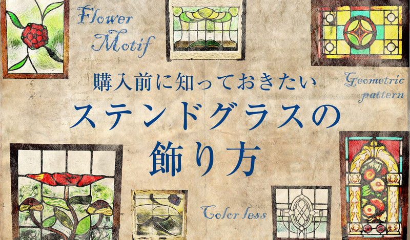 流れるような曲線が印象的なデザインや格子のデザインなど、アンティークステンドグラスを5点掲載しました。