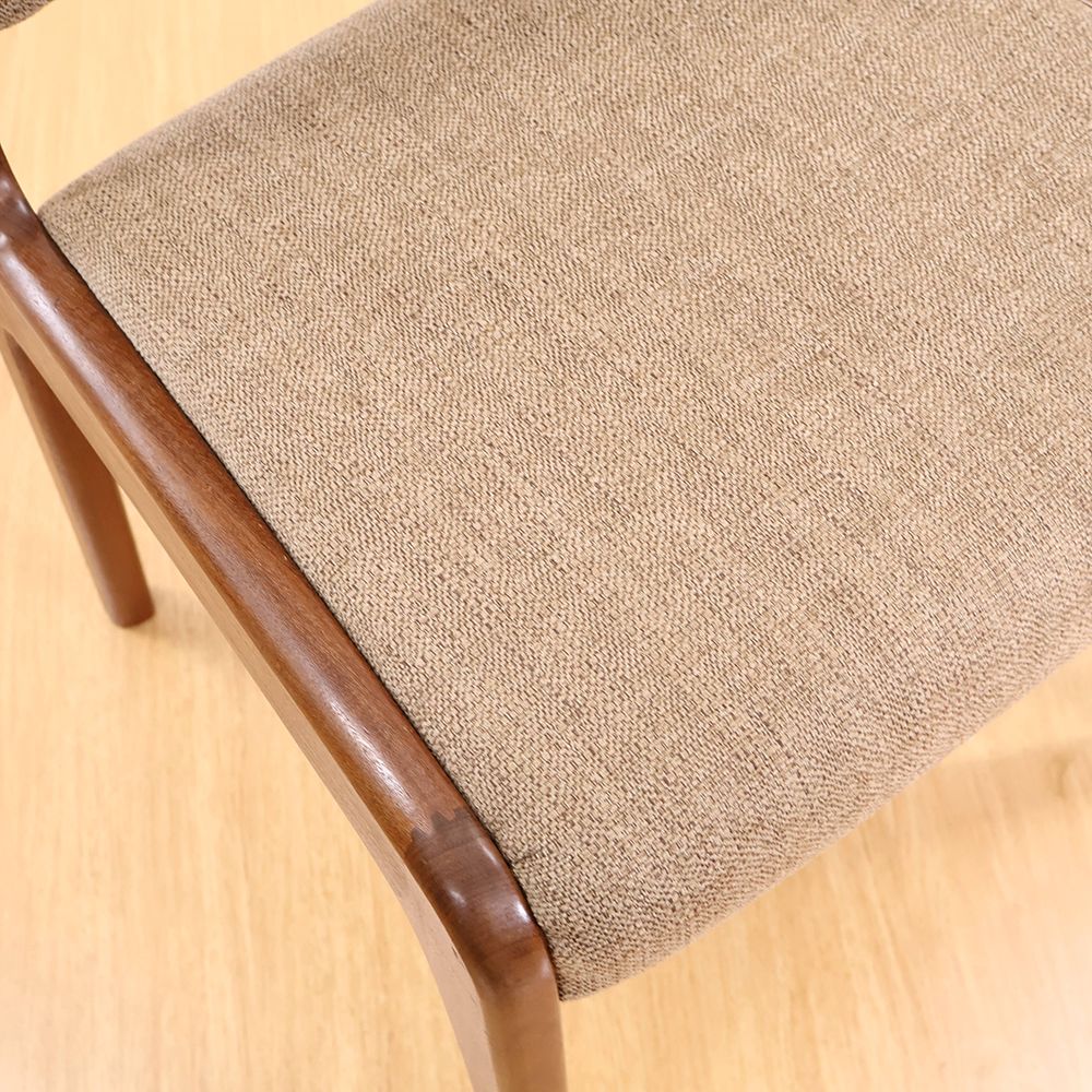 実際に椅子を引いてみたり腰掛けてみて気が付くのは、チークの手触りや体に馴染むカーブの心地よさ。
