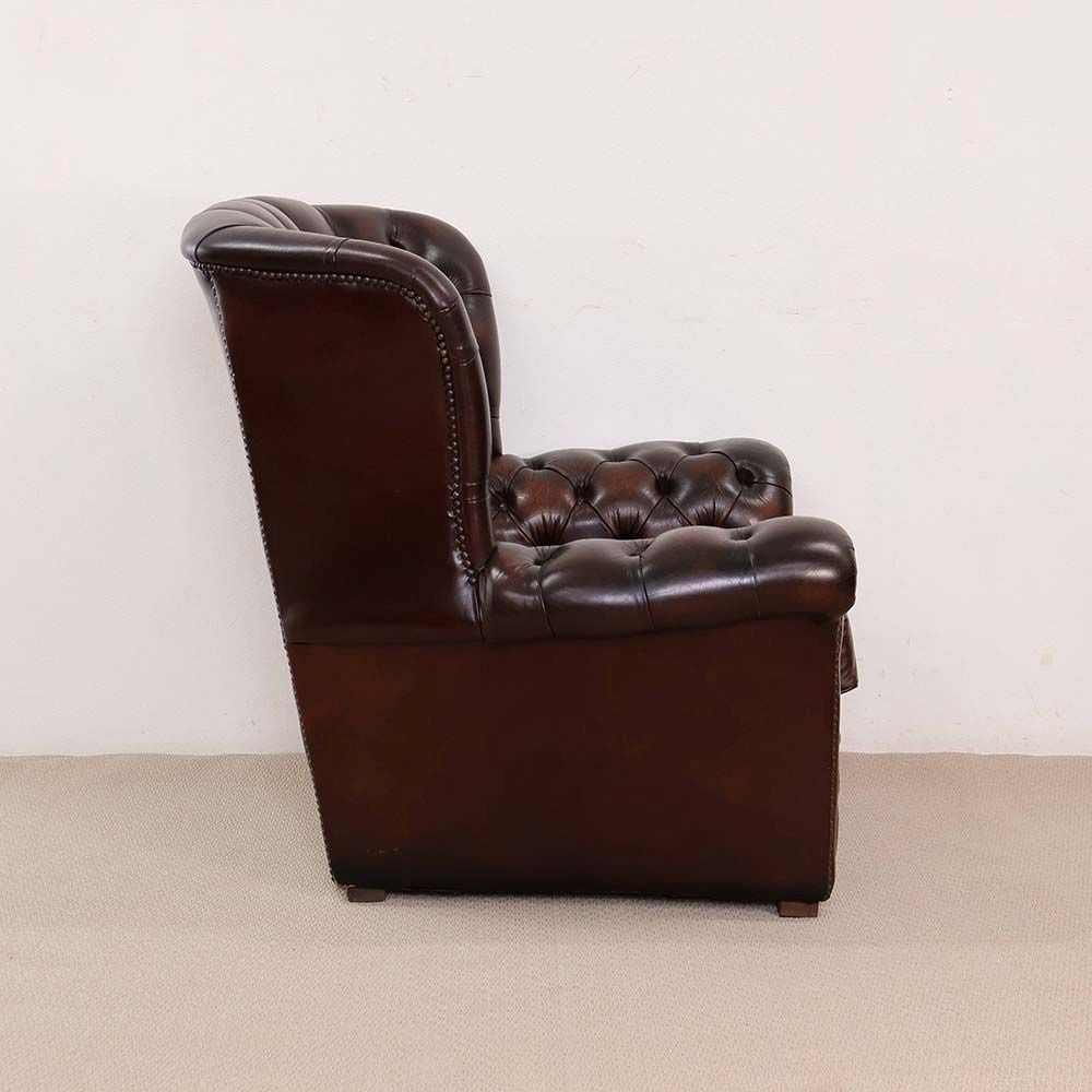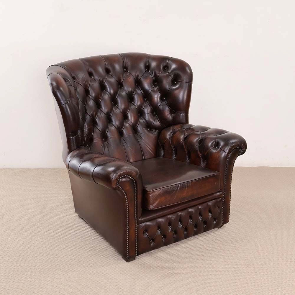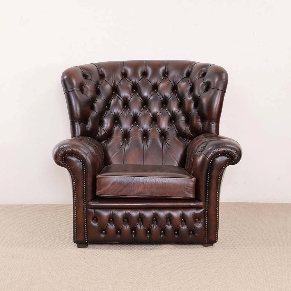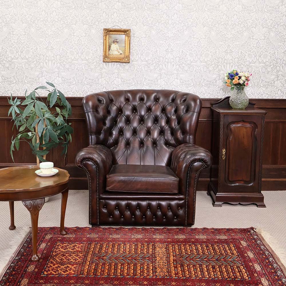 重厚な佇まいに威厳すら感じる一人掛けソファは、贅沢なレザー張り。