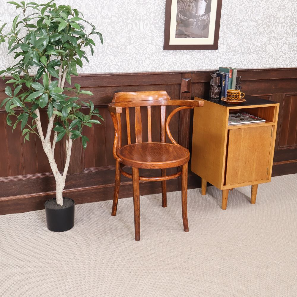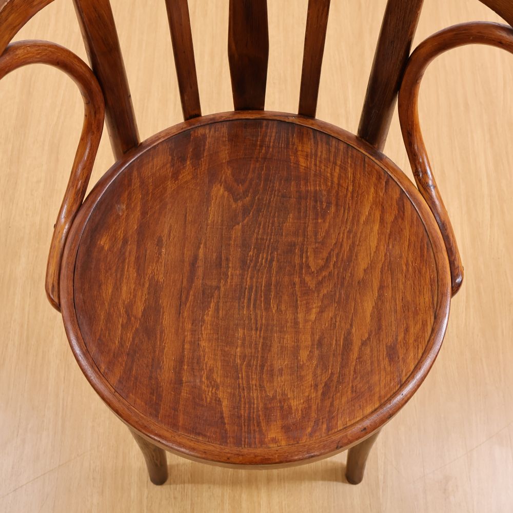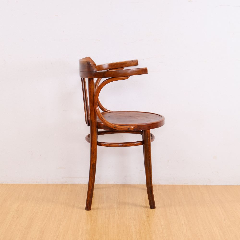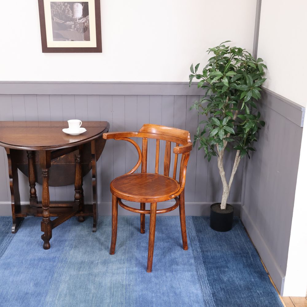 蒸気で木を曲げるという革新的な技術により、軽くて丈夫、そしてなにより美しいデザインで、19世紀のヨーロッパ中に広まりました。そんな歴史の息吹を感じさせる、アーム付きのクラシックな一脚が届きました。