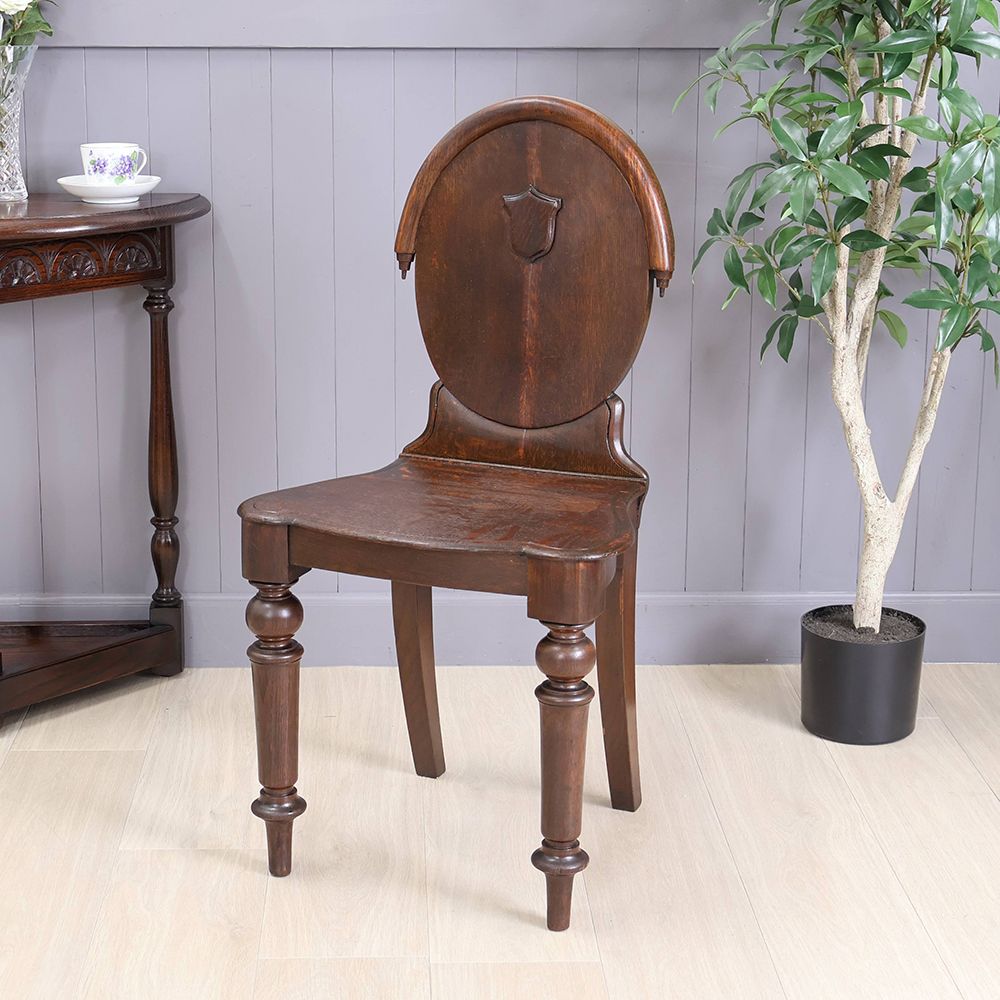 丸いミラーのような形の背もたれに添えられた小さなシールドの装飾が印象的で、まるで物語の中から現れたようなクラシカルな雰囲気をまとっています。