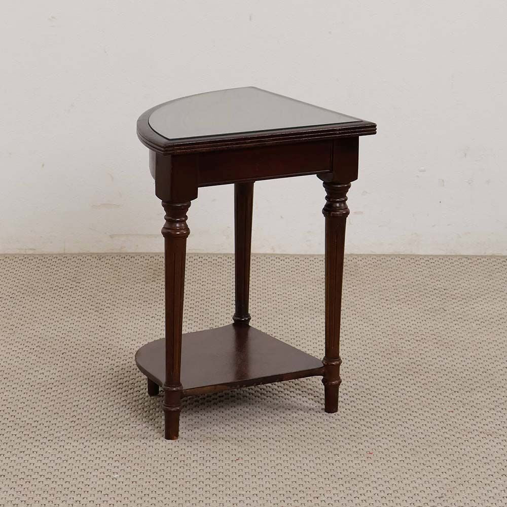 ミニテーブルは三角形の形をしていて、足下に棚が付いています。