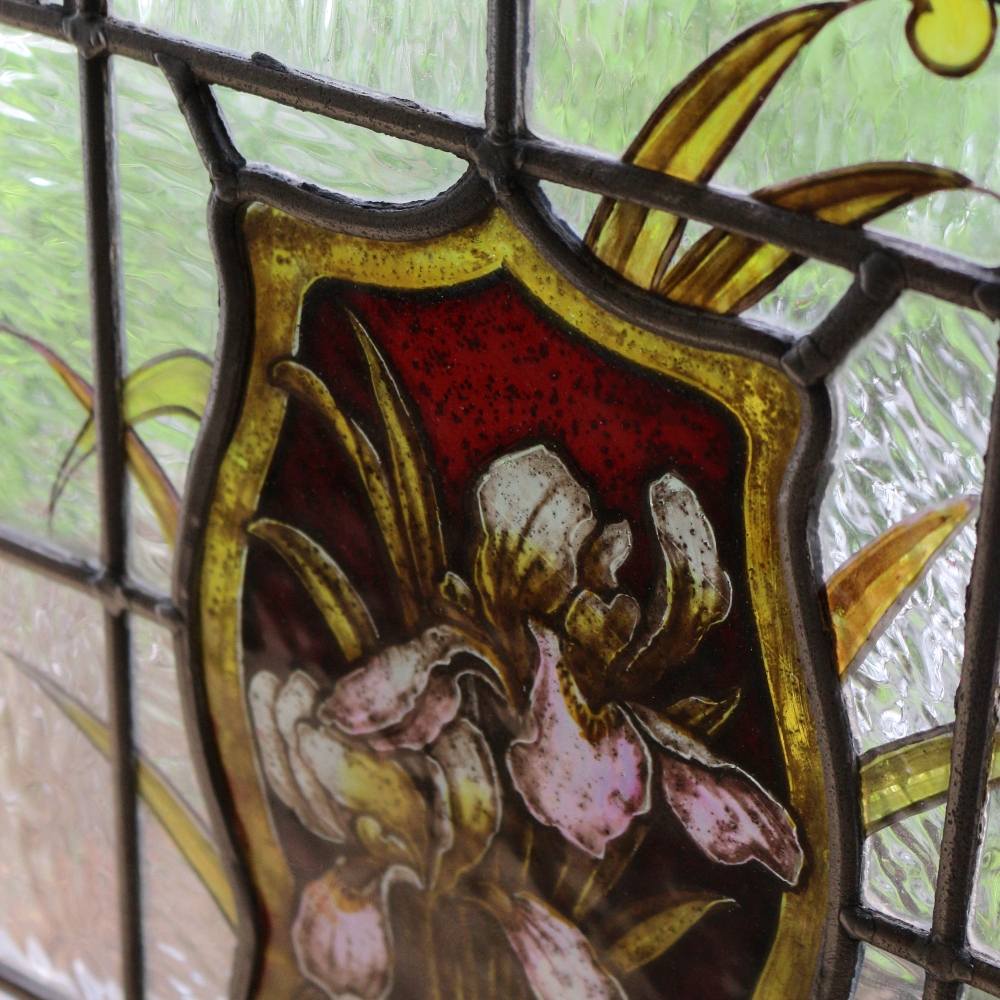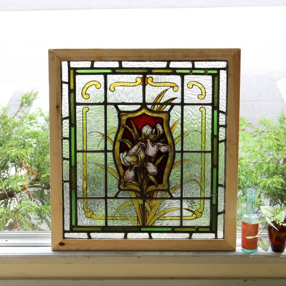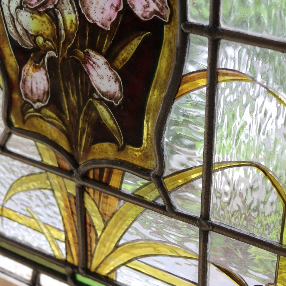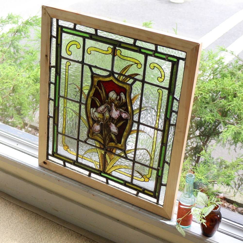 アイリスのような花が描かれた素敵な絵付けのステンドグラスが入荷しました。