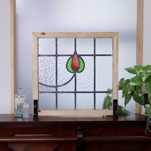赤とグリーンの花モチーフ 英国アンティークステンドグラス VC114-258003