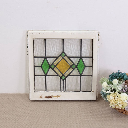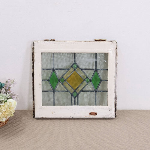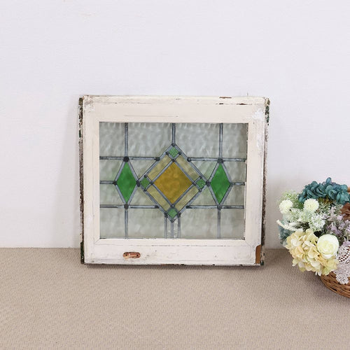 シンプルなグリーンモチーフの英国アンティークステンドグラス VC114-257002
