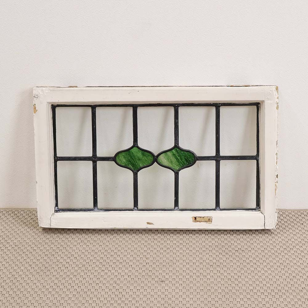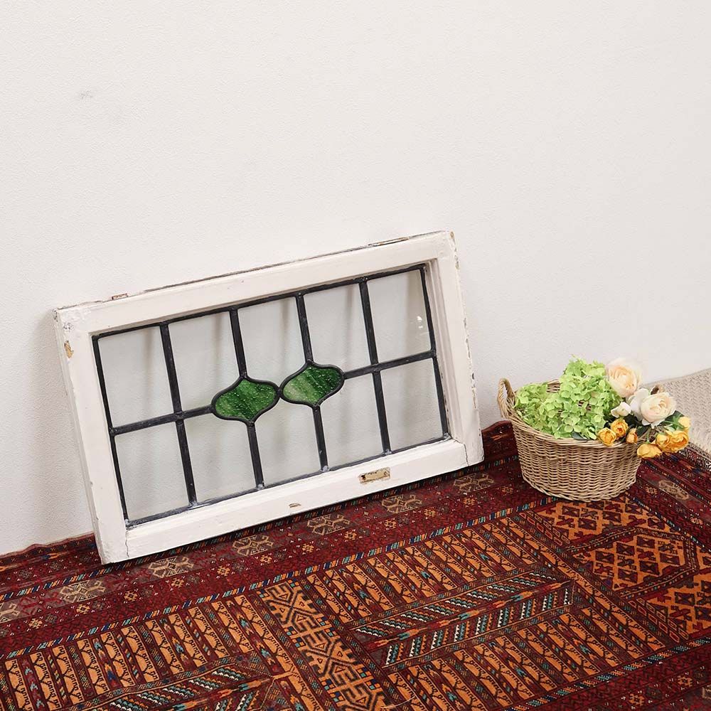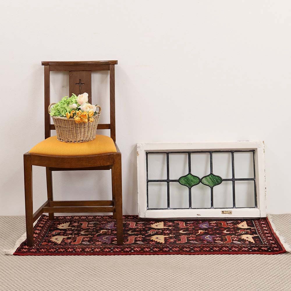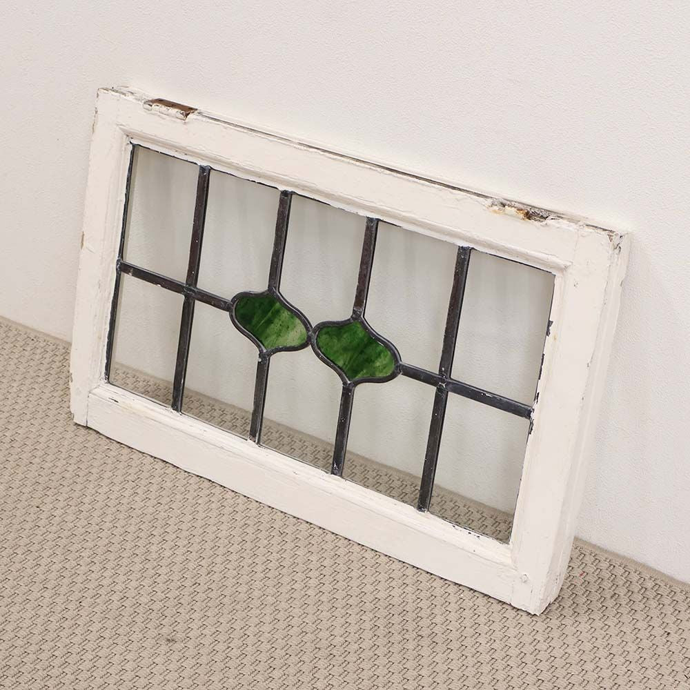 イギリスの古い住宅から取り外された、木枠付きのアンティークステンドグラス。