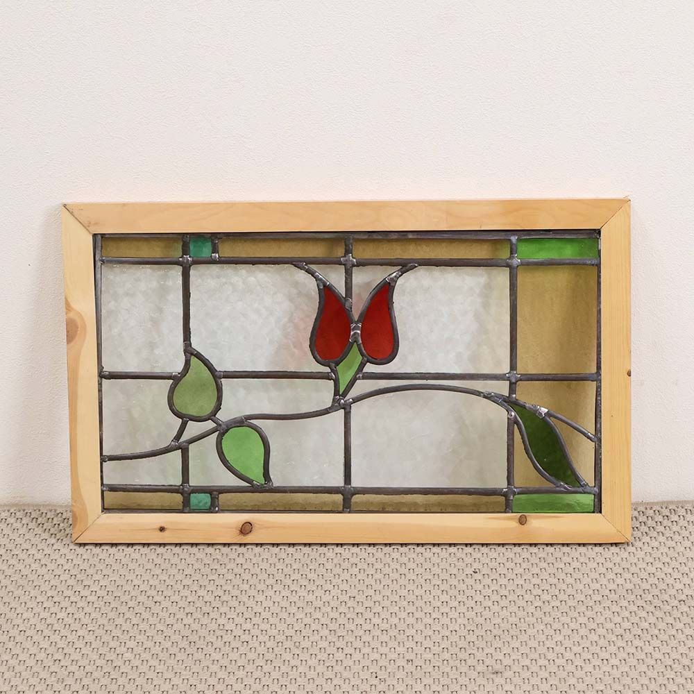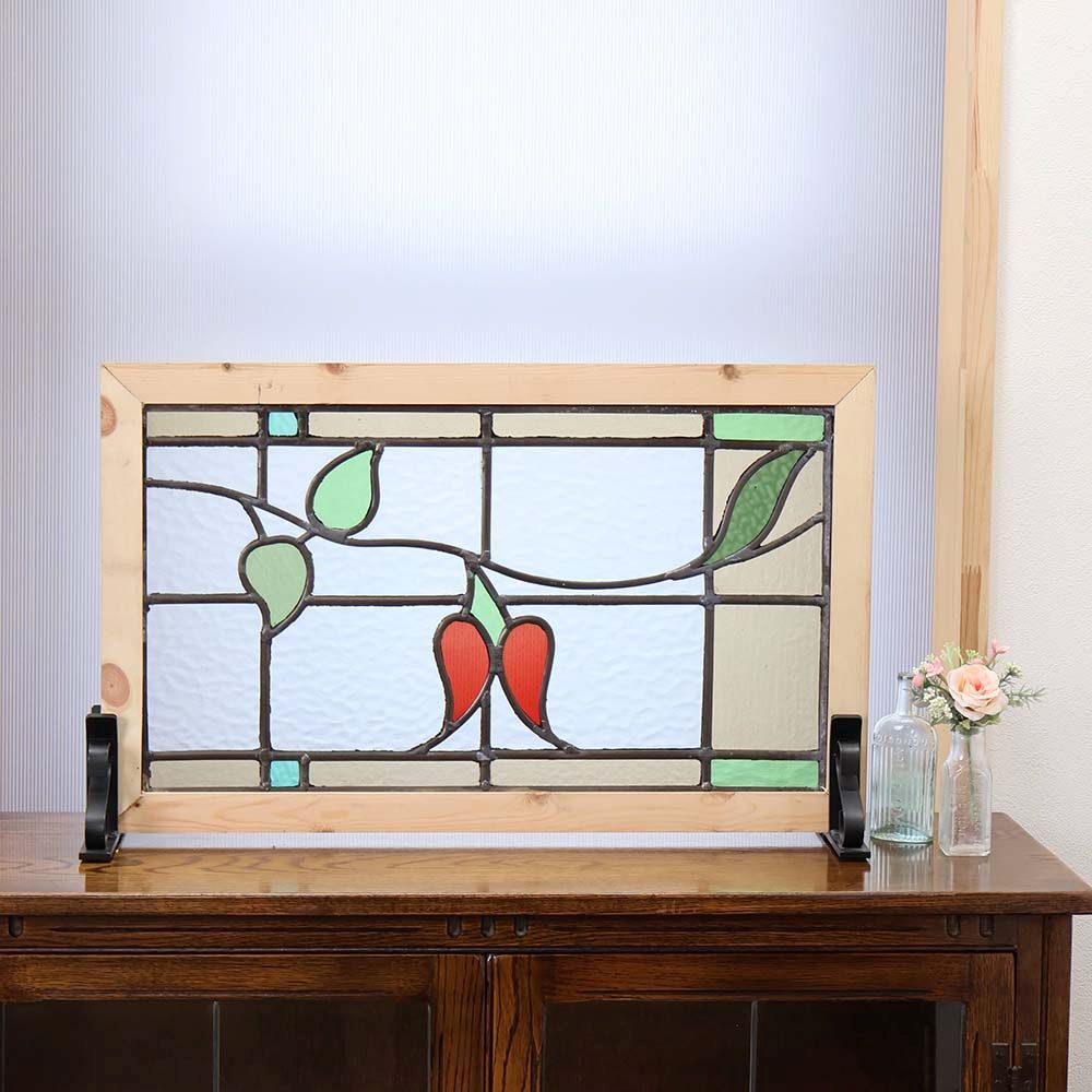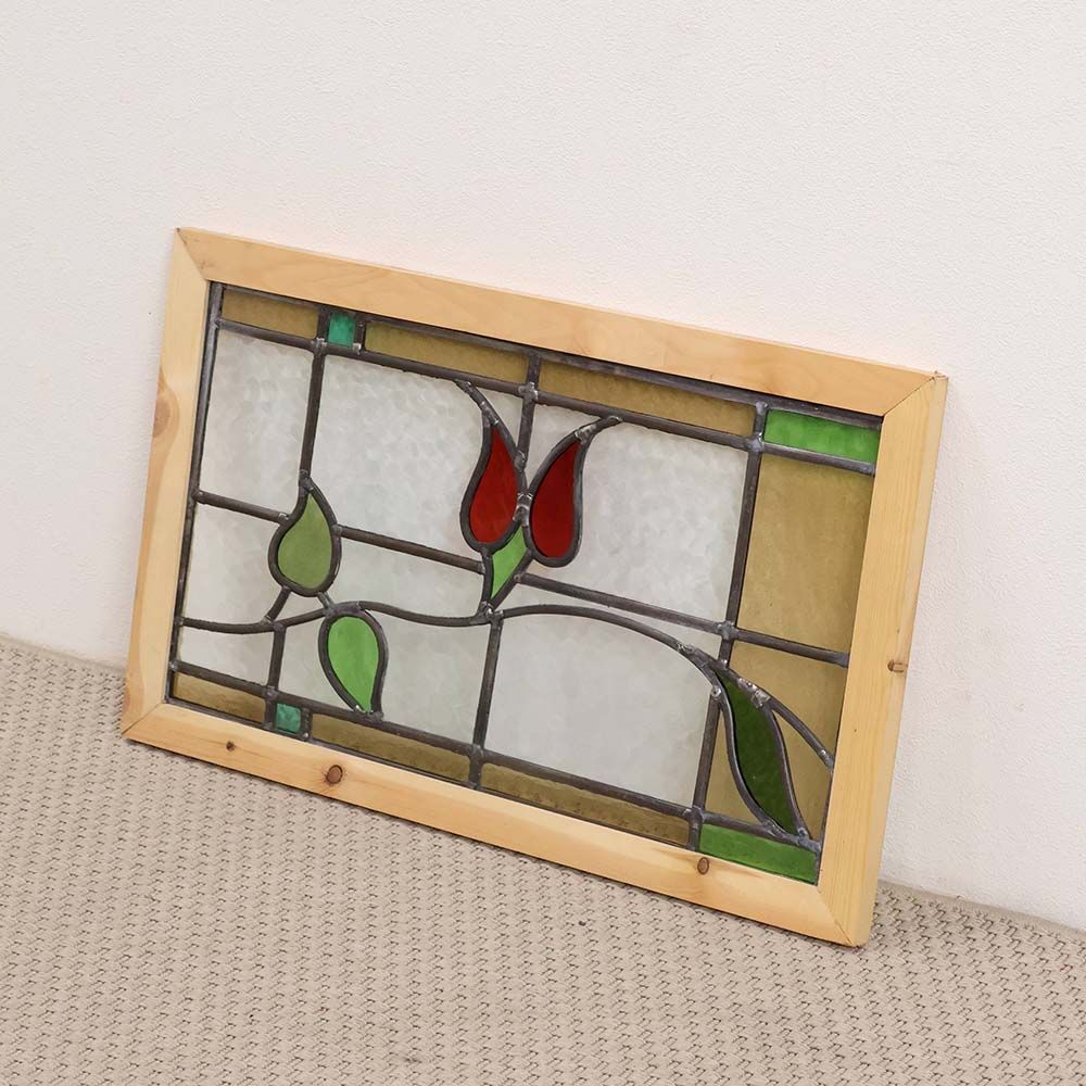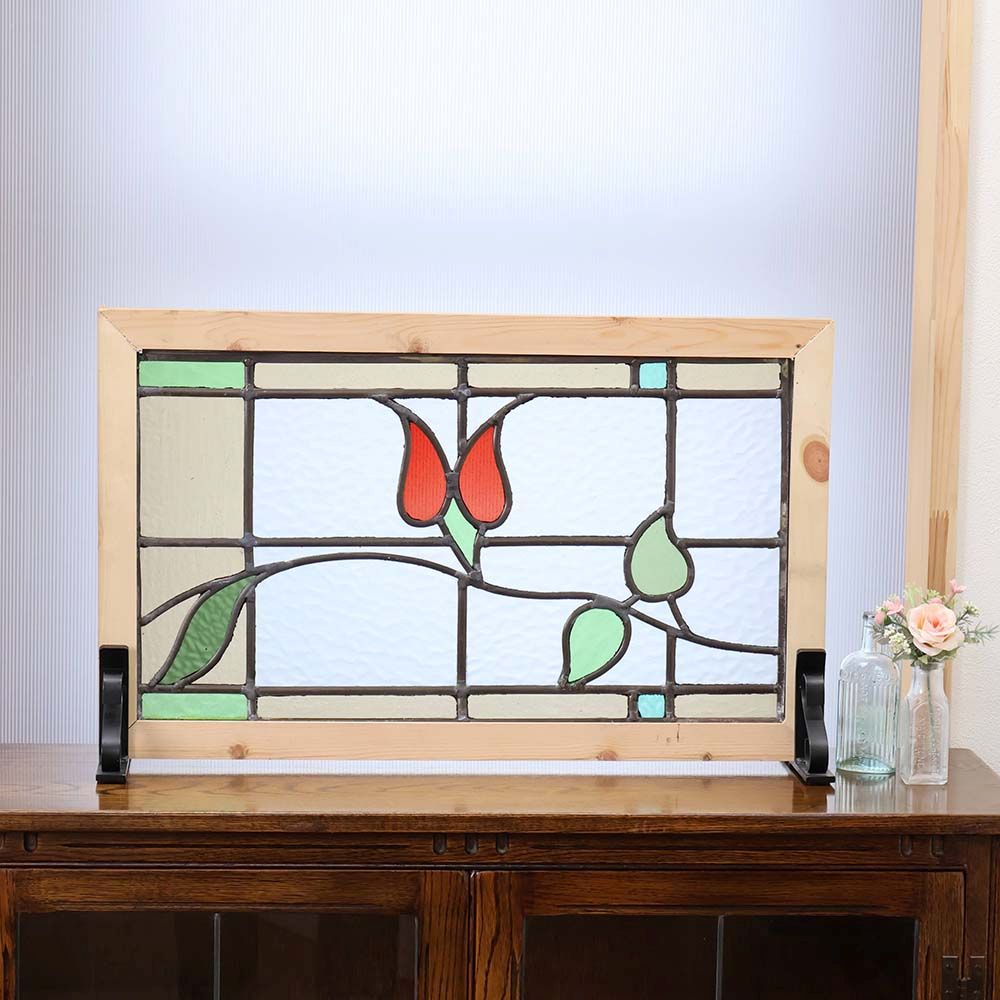 イギリスで買い付けた、花をモチーフにしたデザインが印象的なアンティークステンドグラス。