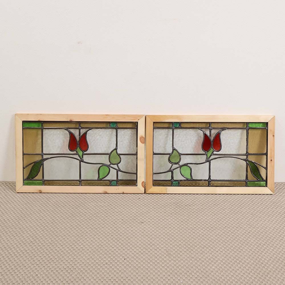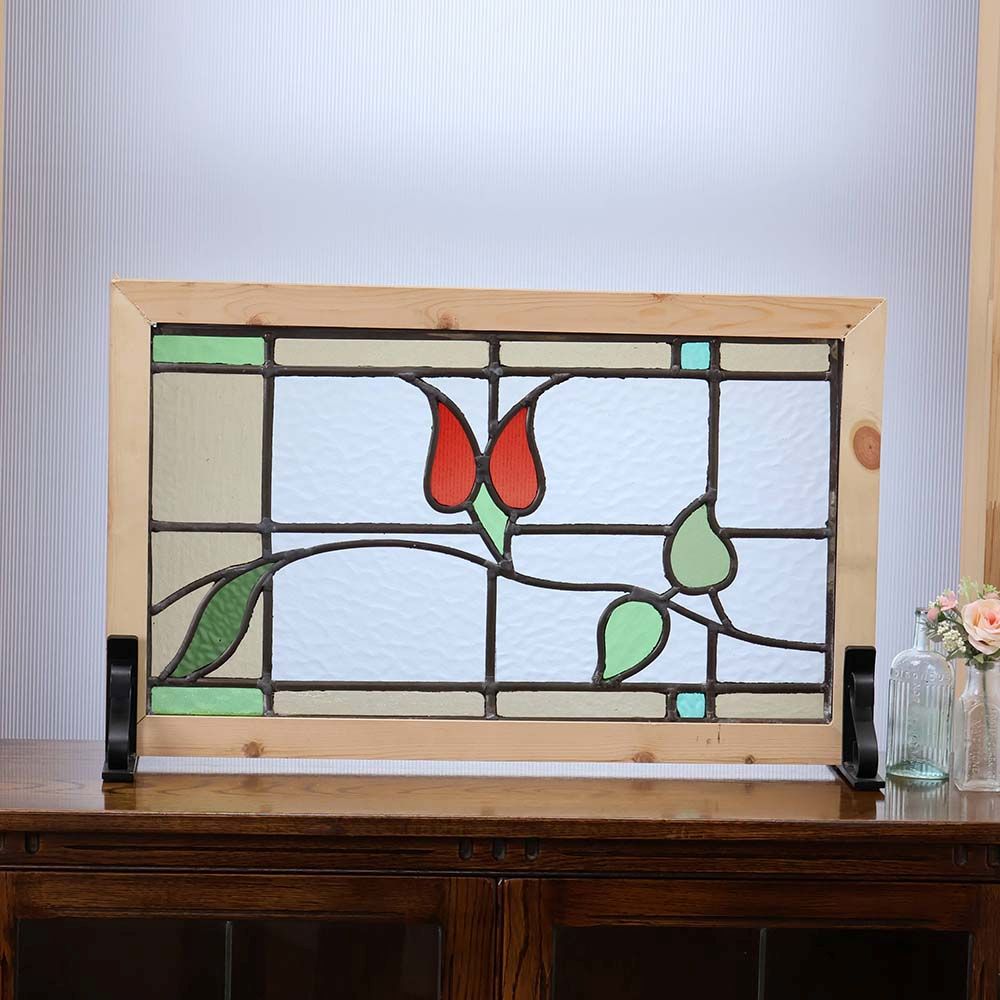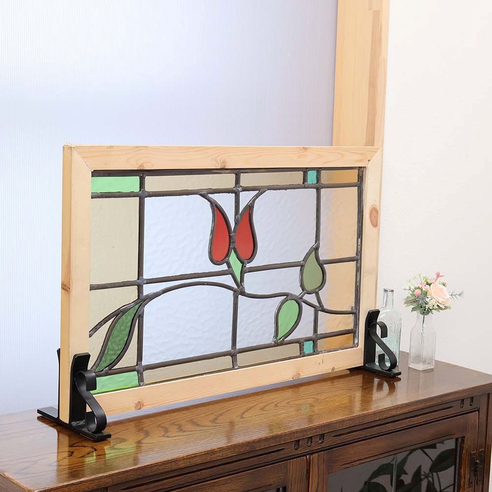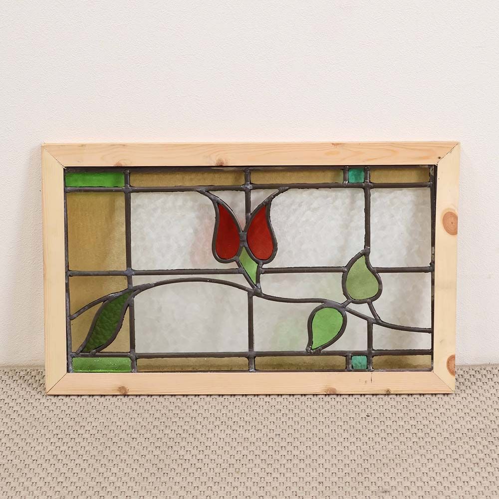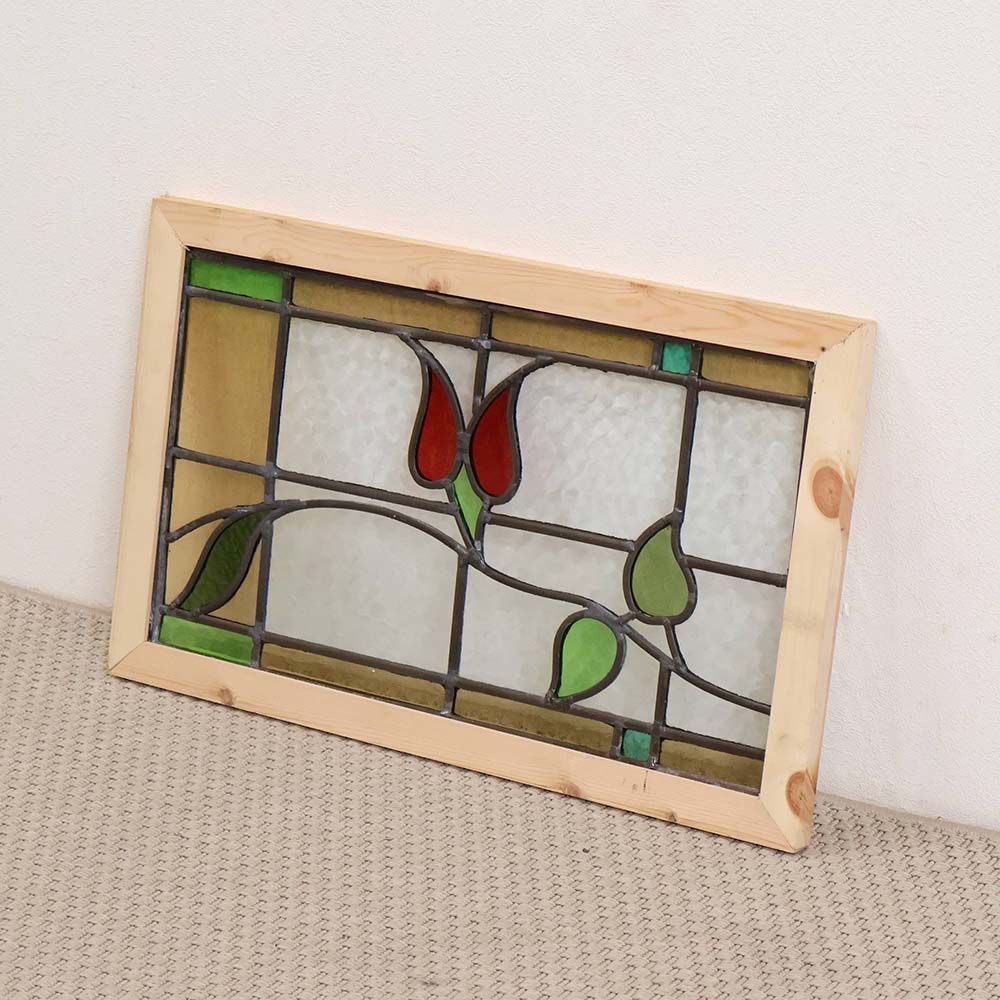 イギリスで買い付けた、花をモチーフにしたデザインが印象的なアンティークステンドグラス。