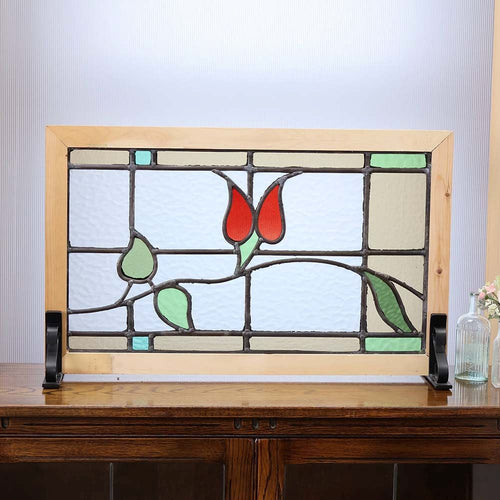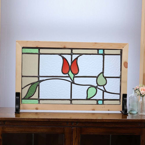 花をモチーフにしたテクスチャのガラスがレトロで素敵♪ アンティーク・ステンドグラス VC109-011004