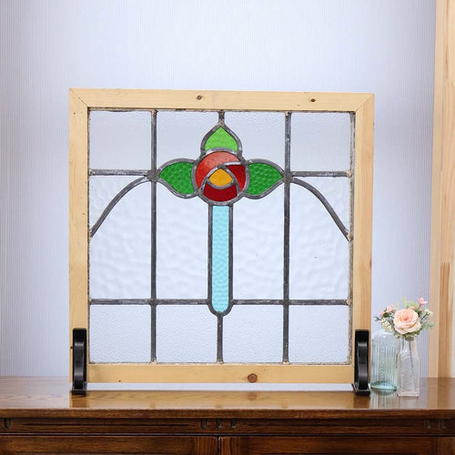 赤と黄色の彩りが美しい花柄のアンティークステンドグラス VC114-262004