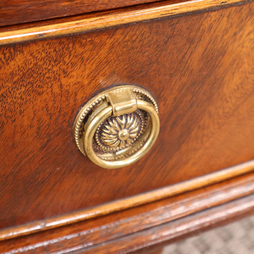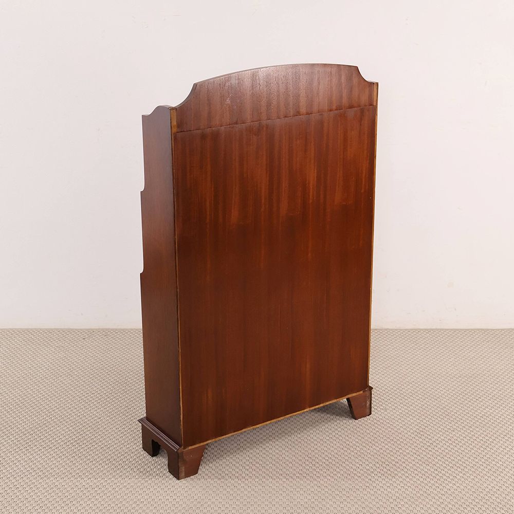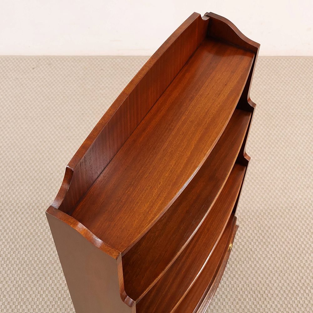 前面が優雅にカーブする棚と引出、オシャレなカットワークなど、小ぶりながら隅々までオシャレに整えられた、素敵なヴィンテージです。