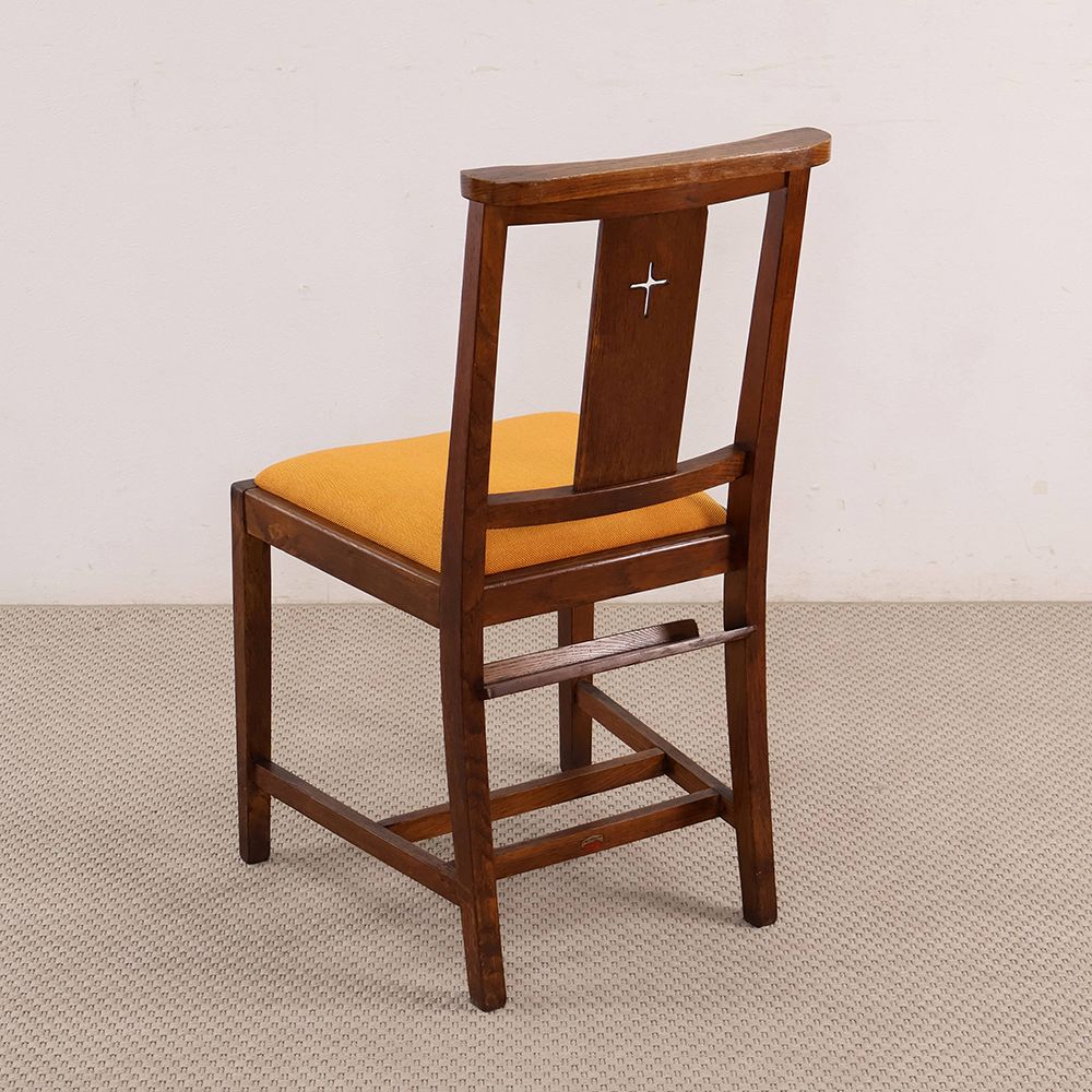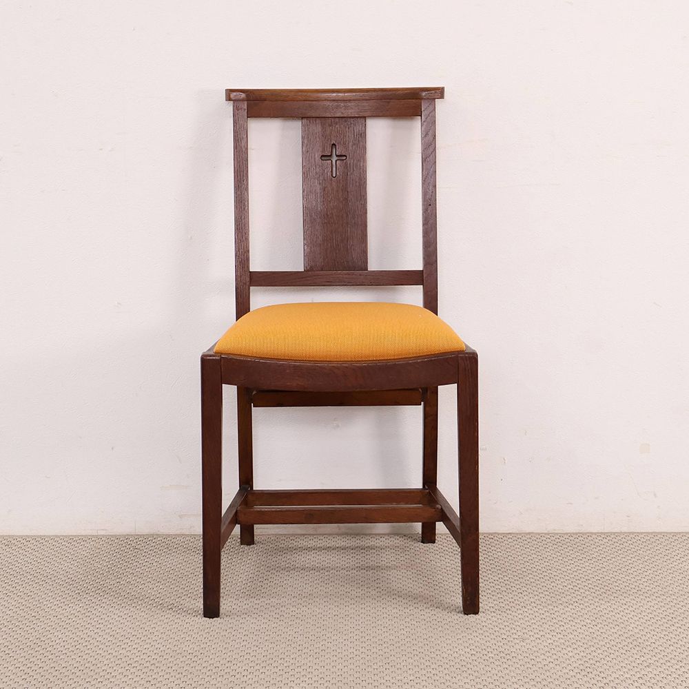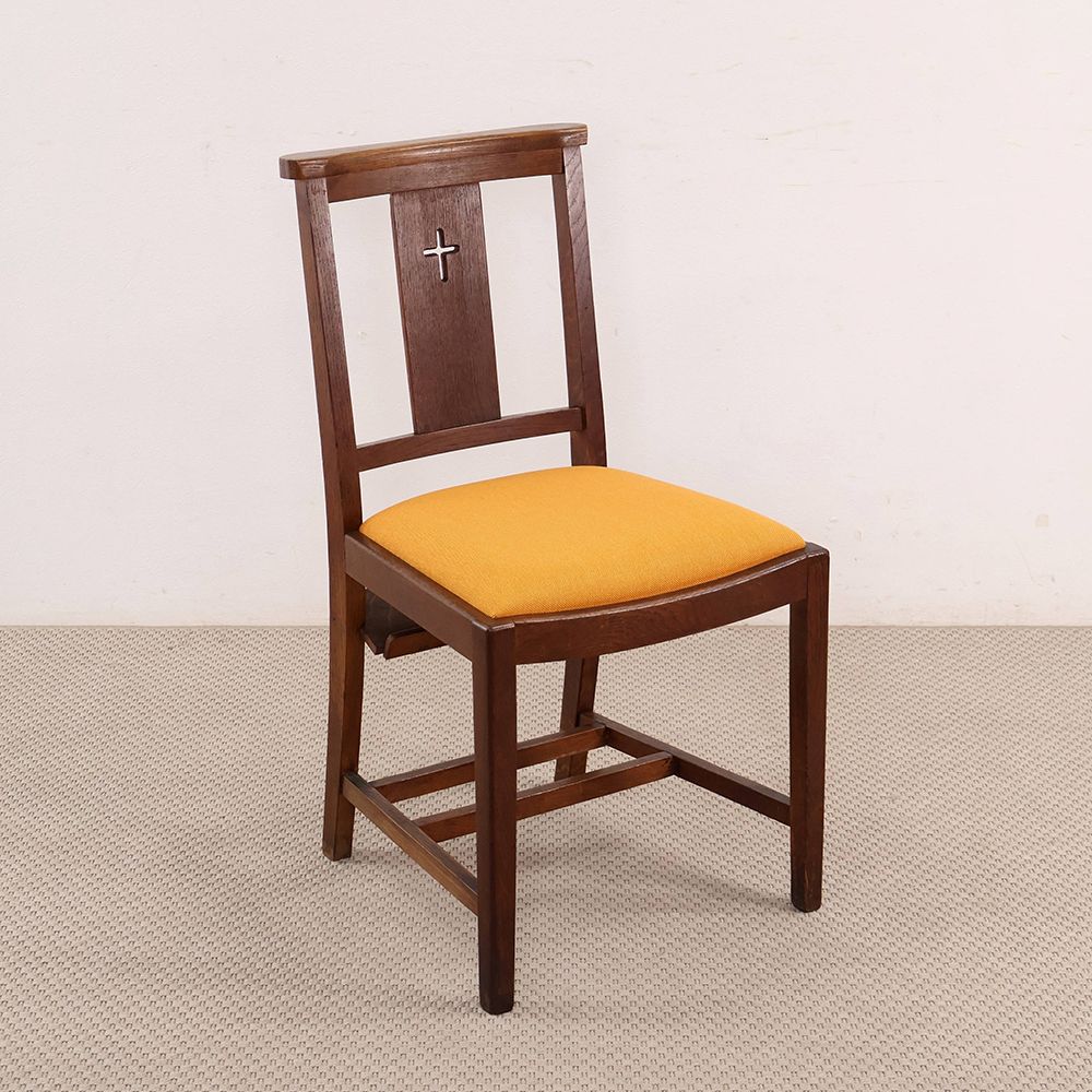 背もたれに切り抜かれた十字から透ける光には、清々しくも凛とした気品が感じられて、「祈りのチェア」として過ごしてきた長い時間が伺われる1脚です。