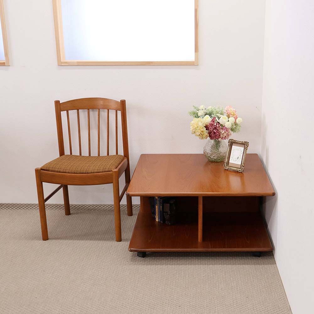 直径は79センチ、大き目の正方形が使いやすいコーヒーテーブルは、ミッドセンチュリー全盛の1970年代に作られたヴィンテージ。