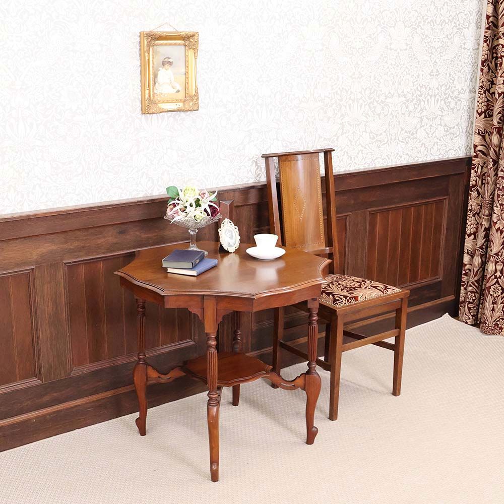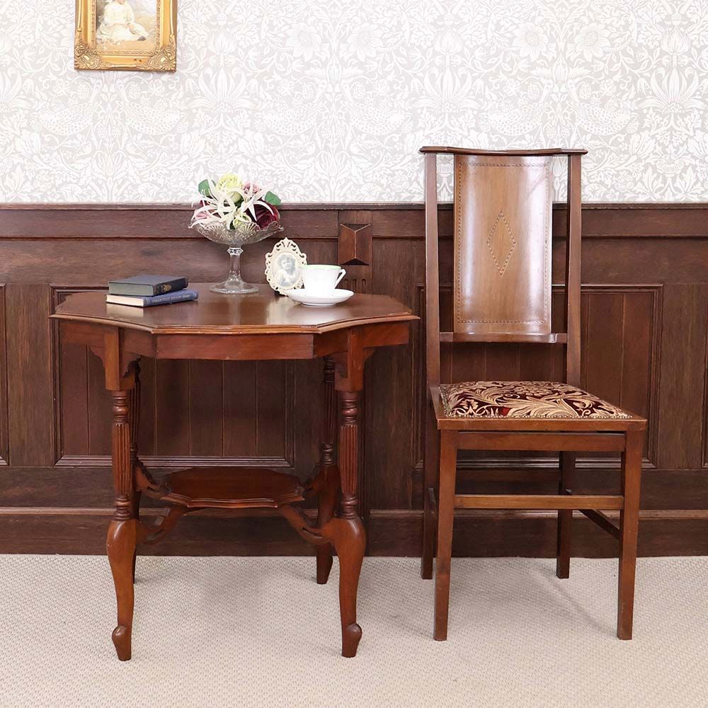透明感のある美しい木肌のウォールナットを贅沢に使って、華やかな佇まいを楽しめるアンティークです。