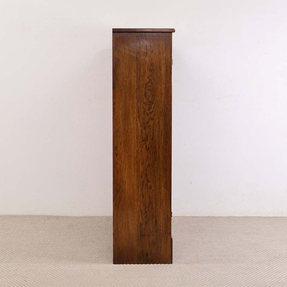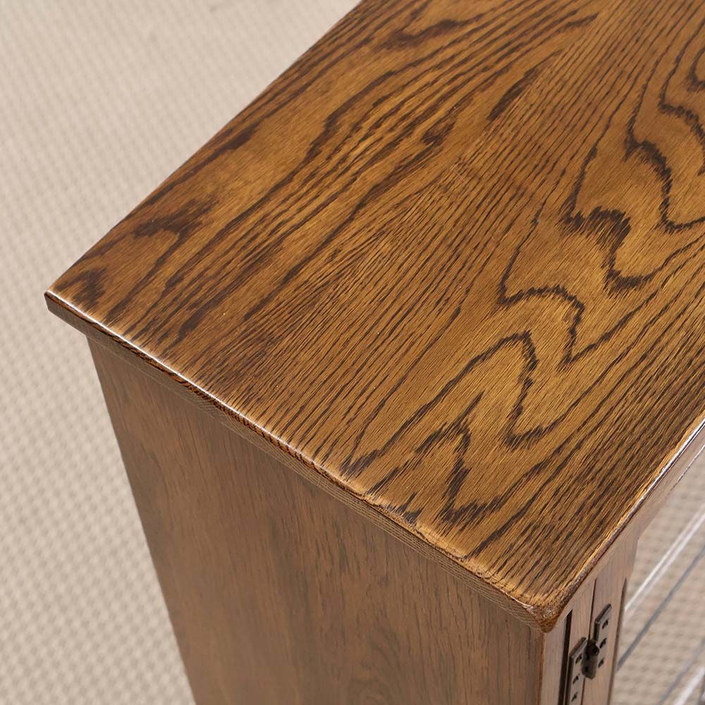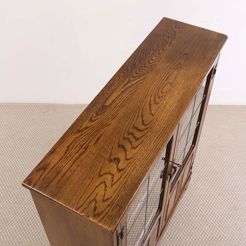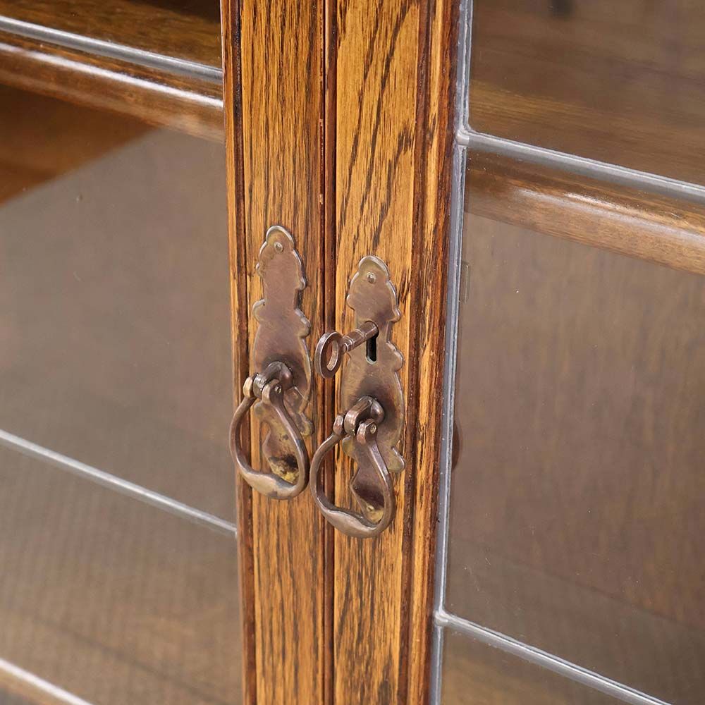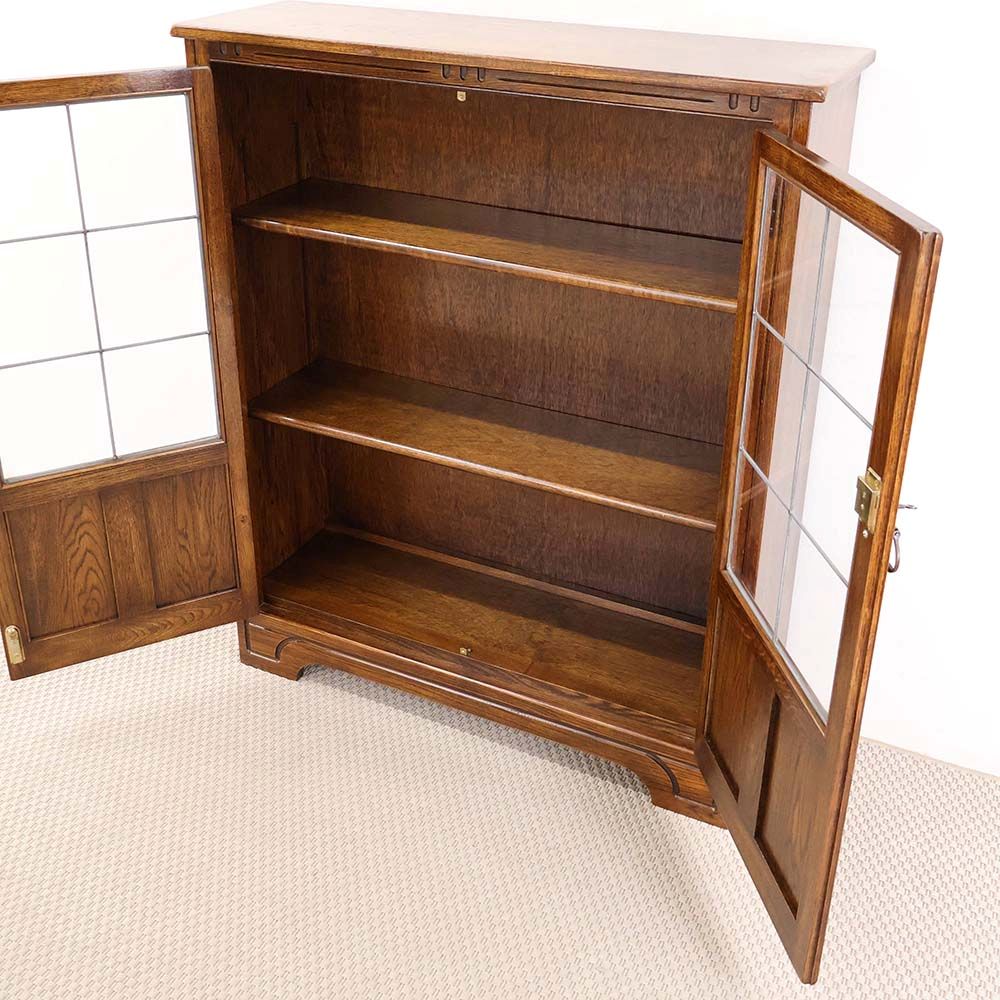 ガラス扉は鉛線(ケイム)を障子の格子のように配置したステンドグラス。オークの木目との組み合わせも心地良く、このブックケースならフローリングだけでなく畳のある和の空間にもよく似合うんじゃないかしら。