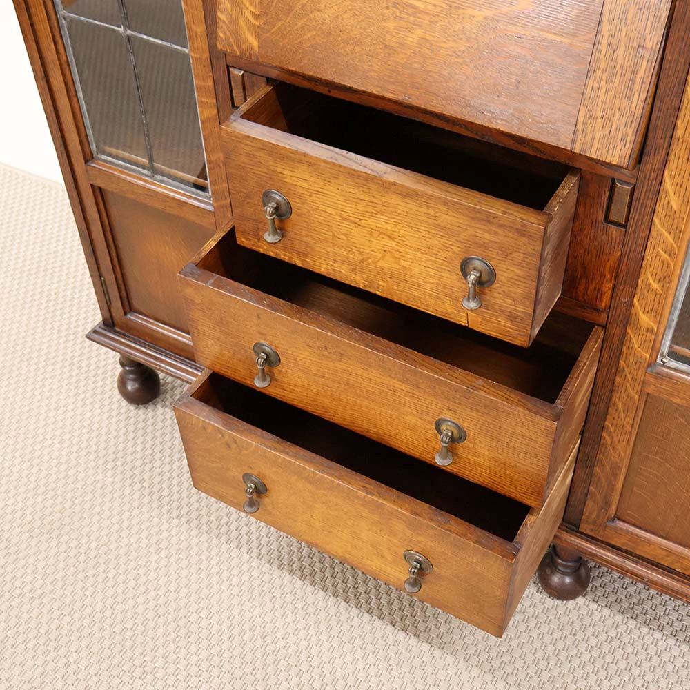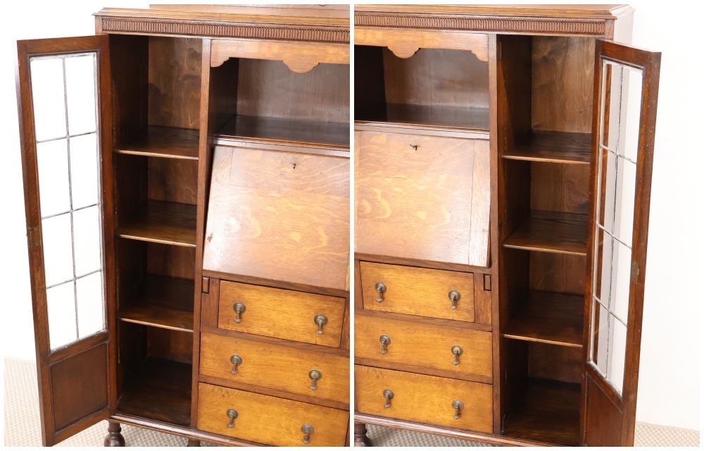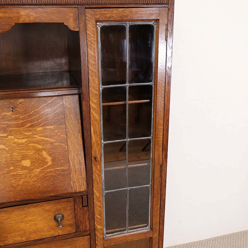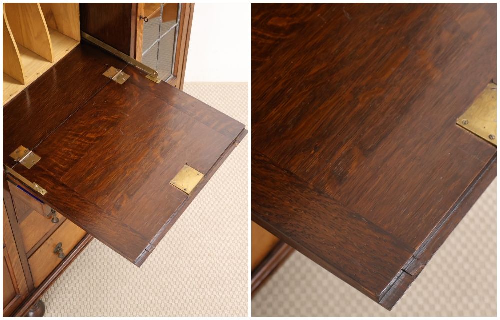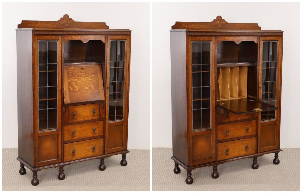本棚とビューローが1つになった家具なら、背の高い「ビューローブックケース」もあるのですが、こちらは左右にブックケースを配しているので背が高くないのが特徴。