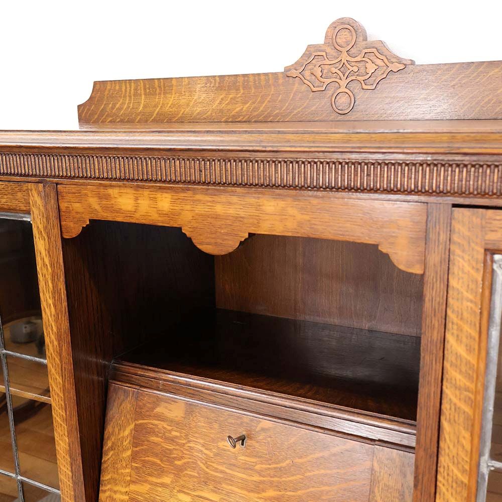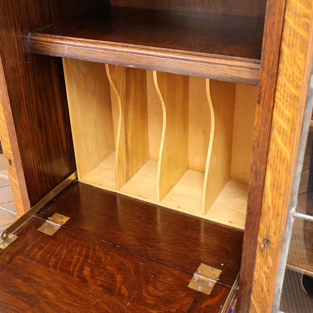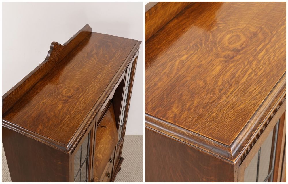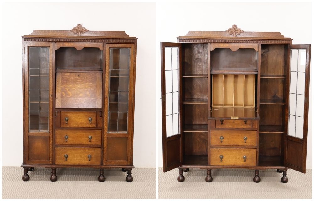 本棚とビューローが1つになった家具なら、背の高い「ビューローブックケース」もあるのですが、こちらは左右にブックケースを配しているので背が高くないのが特徴。