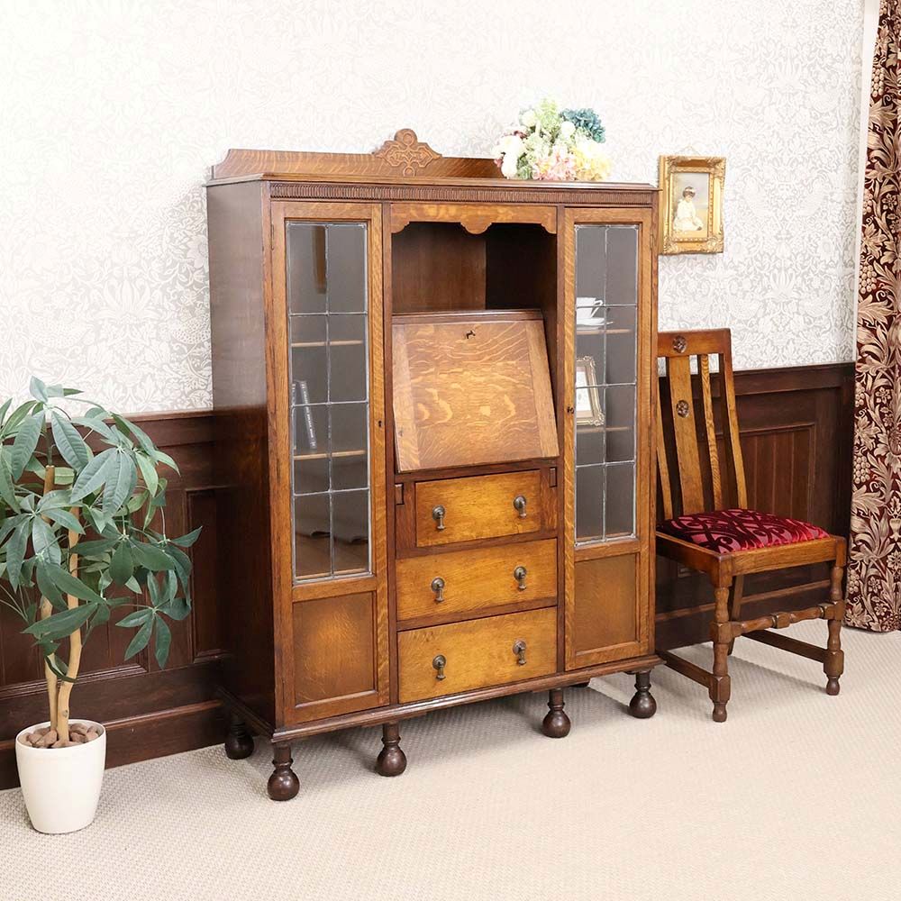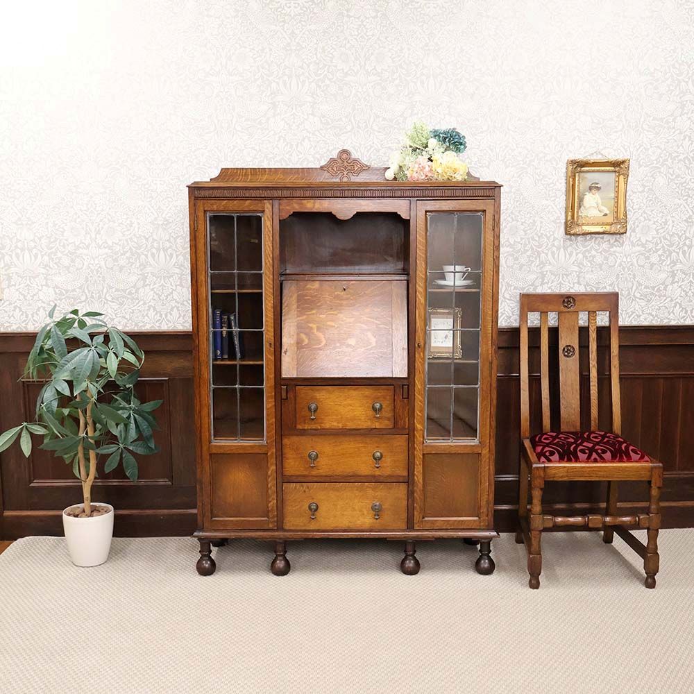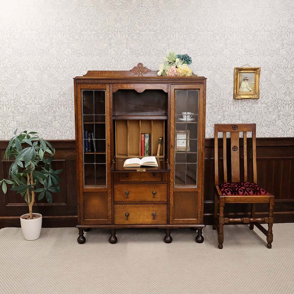 丸い脚が視線を誘うサイドバイサイドビューローブックケースは、シルエットもオシャレ。「何度見ても、やっぱり可愛い!」作業の手を止めて、ついウットリと眺めてしまう、お気に入りのアンティークです。