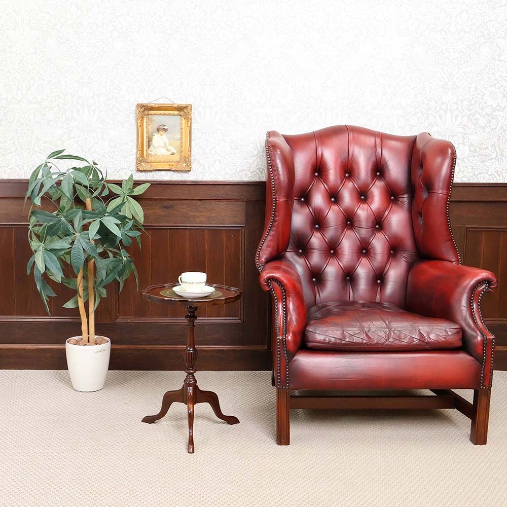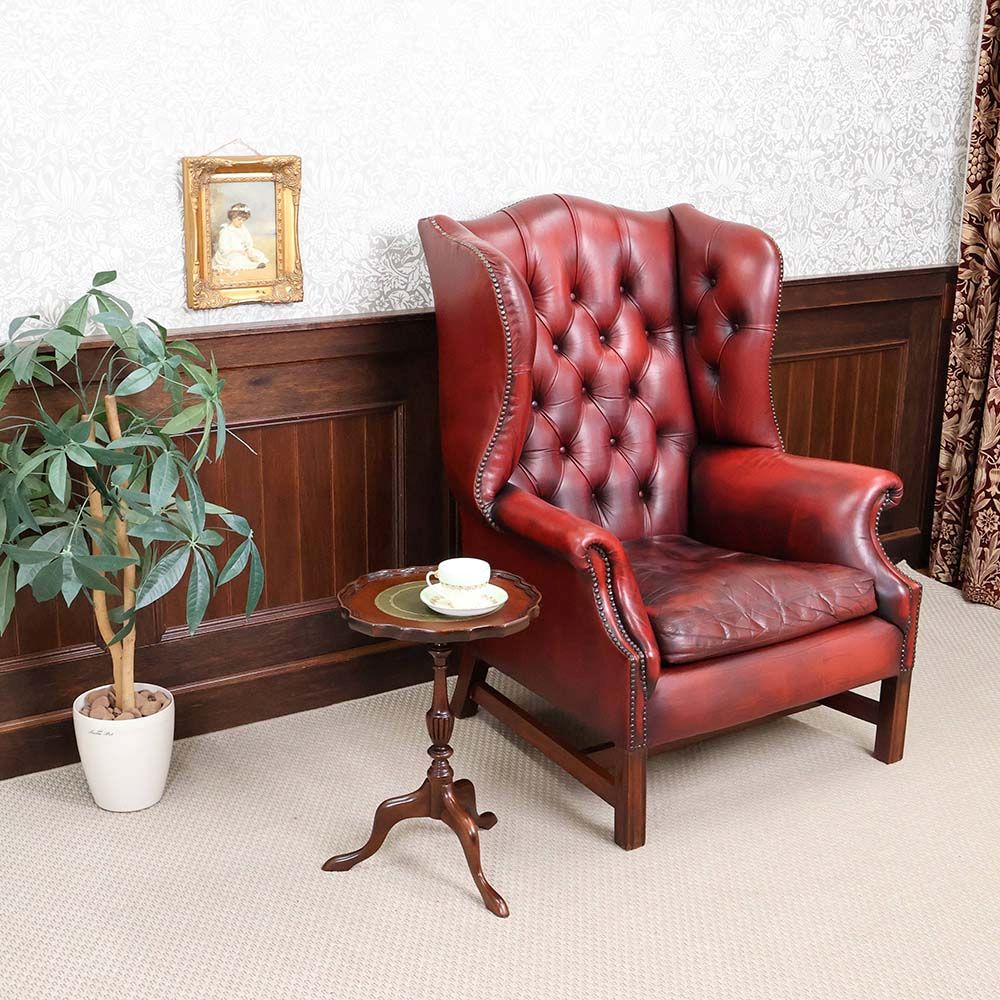 このワインテーブルは天板がオシャレなレザー張りのヴィンテージ。