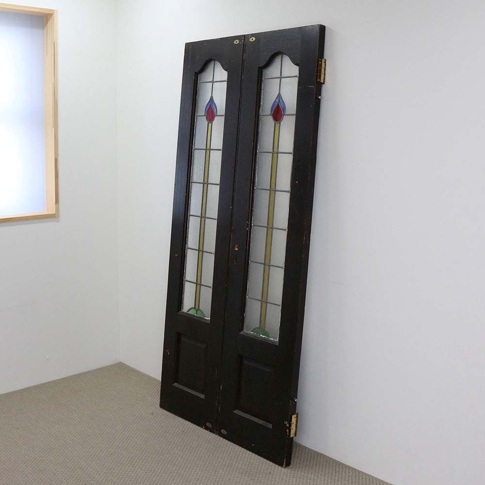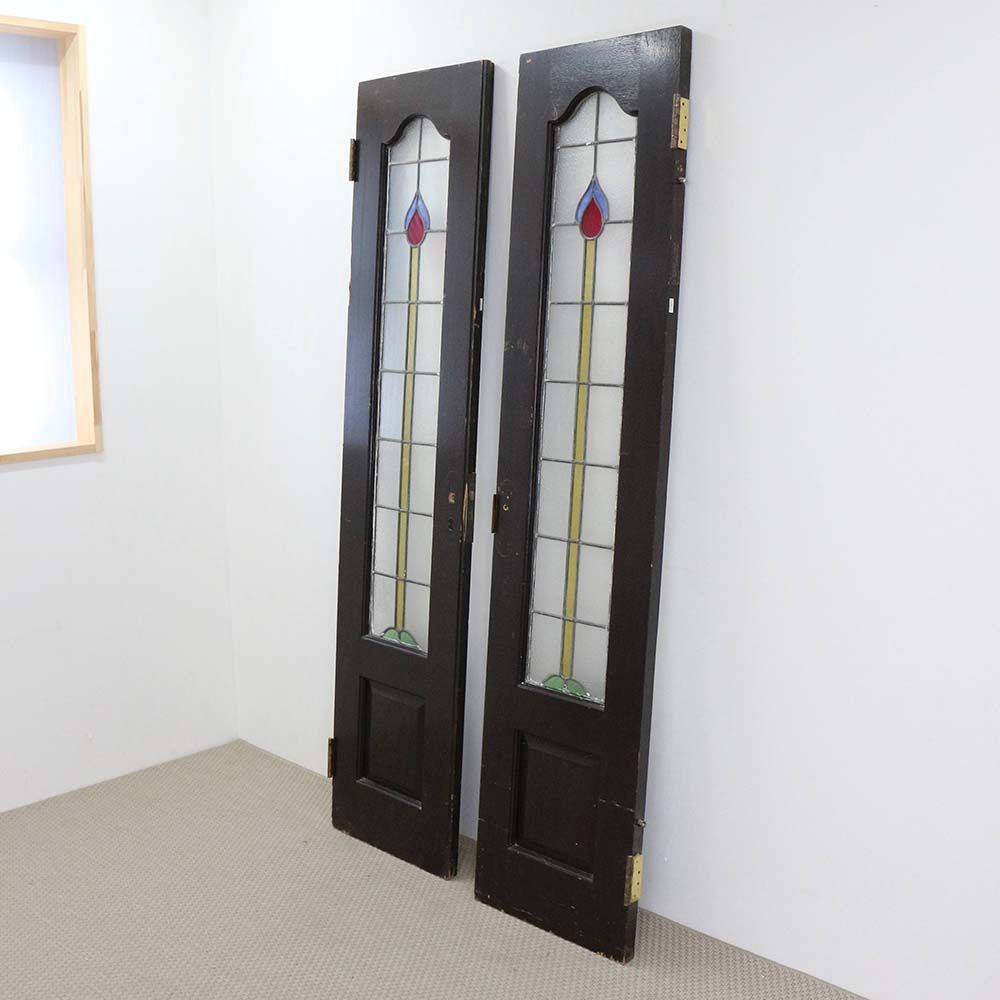 英国アンティークの魅力を凝縮したステンドグラス入りペアドア。