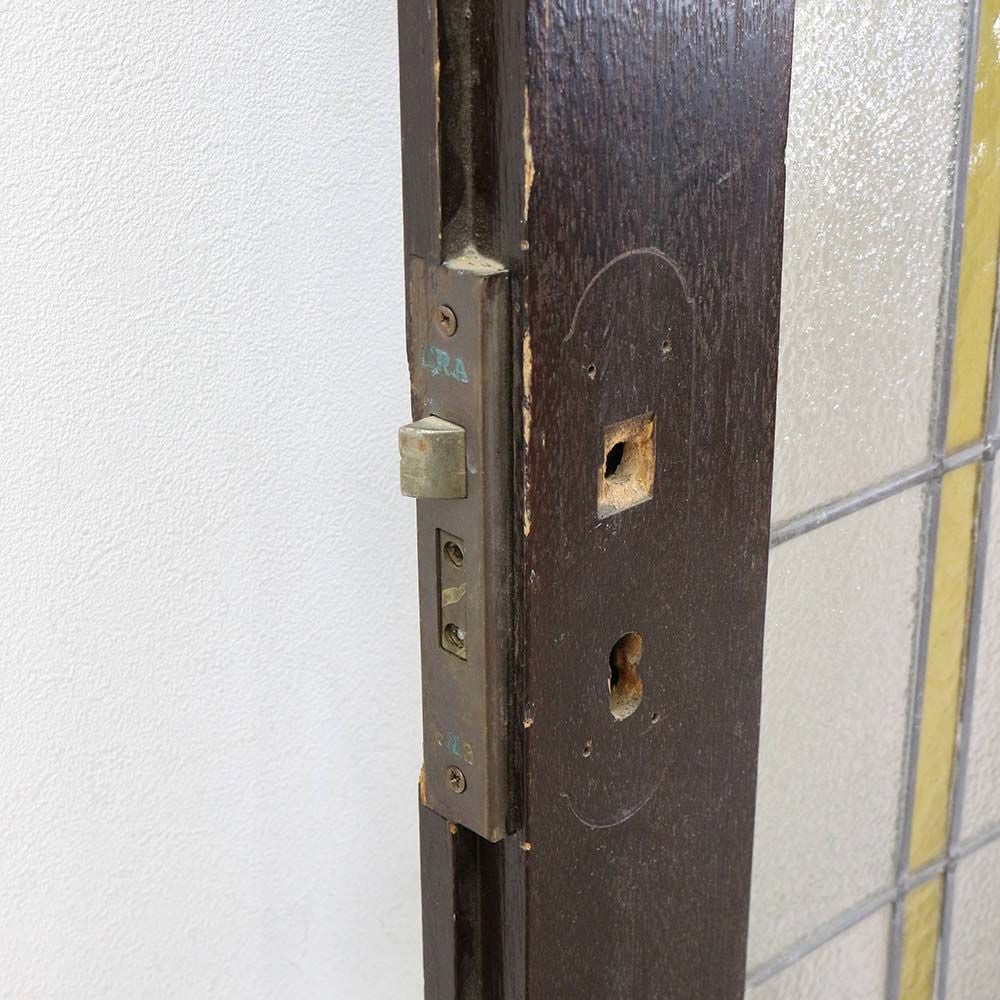 ガラスは仕入れ時のままで、近年の網入りガラス(ワイヤーガラス)がはめ込まれています。