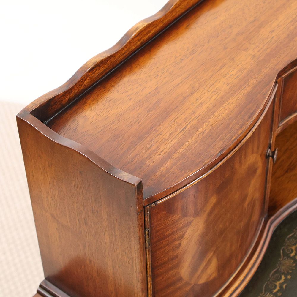 引出にはカーブをあしらいエレガントに、トップの波型のカットワークは可愛らしく、杢目の美しさや脚先のシルエットなど隅々までこだわった作りに、家具職人の情熱と誇りが感じられる優美なヴィンテージです。