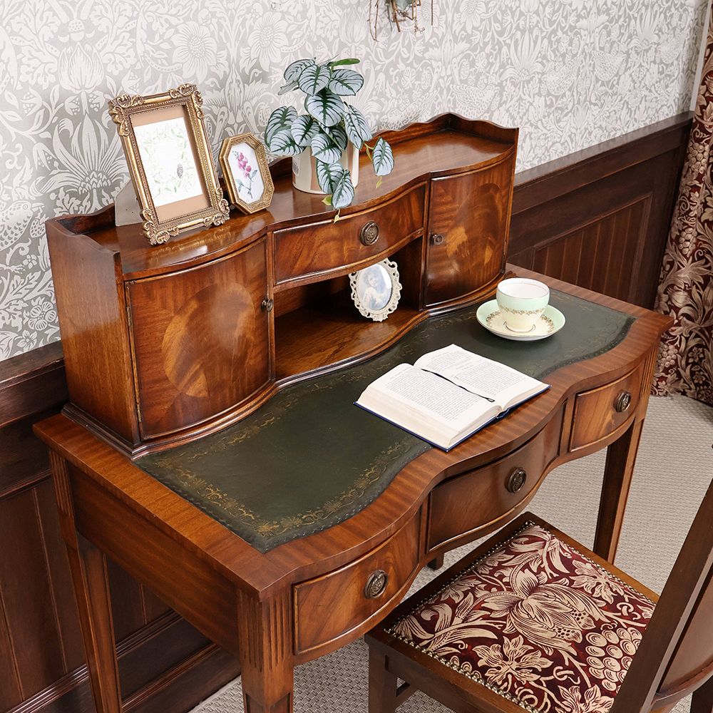 高級感漂うレディースデスクは、マホガニーの華やかな杢目が印象的。