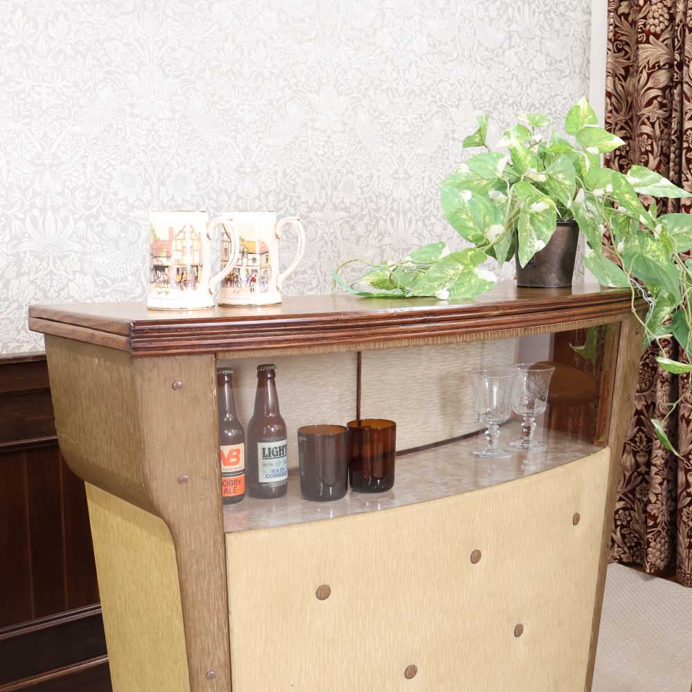 こちらの天板の高さは101センチ。オシャレなカウンターとしても使えるホームバーは、斬新で自由なデザインを楽しんだミッドセンチュリーのヴィンテージ。