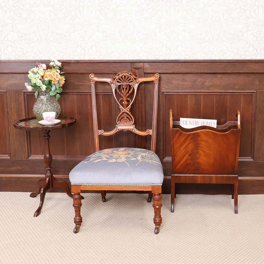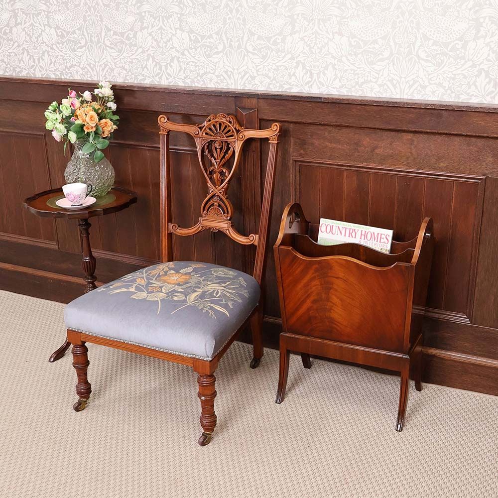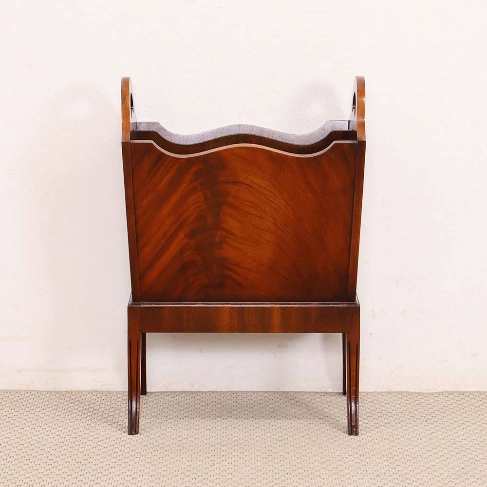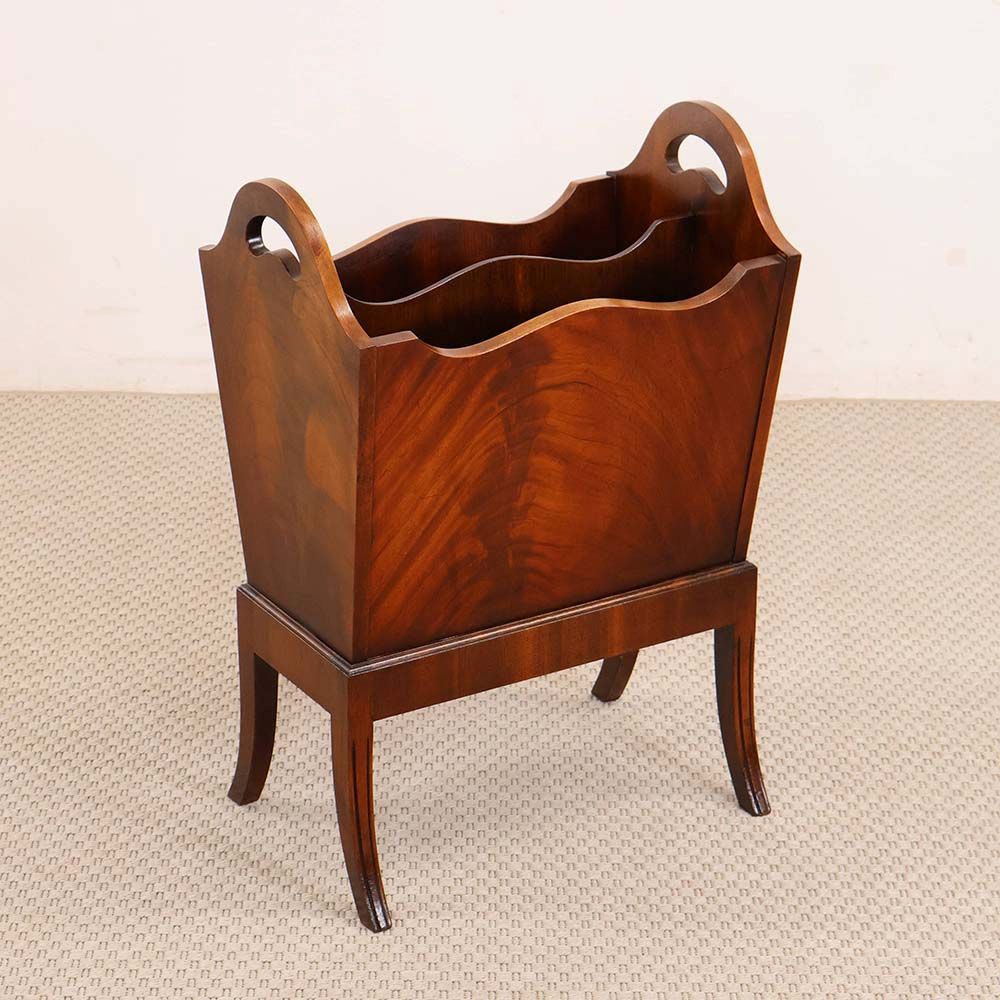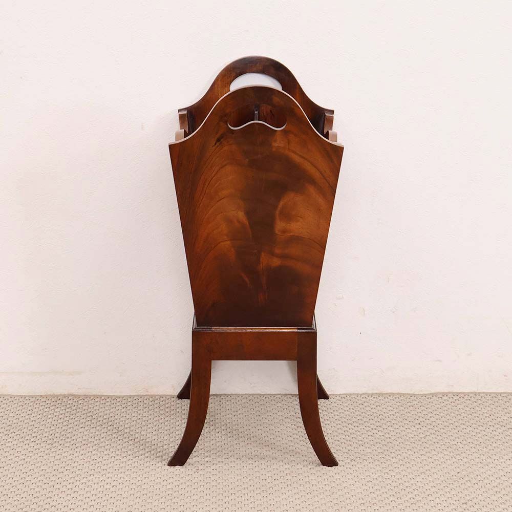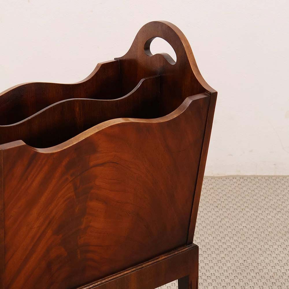 優しくカーブする脚が可愛らしいマガジンラックは、マホガニーの芸術的な杢目も楽しめるアンティーク。