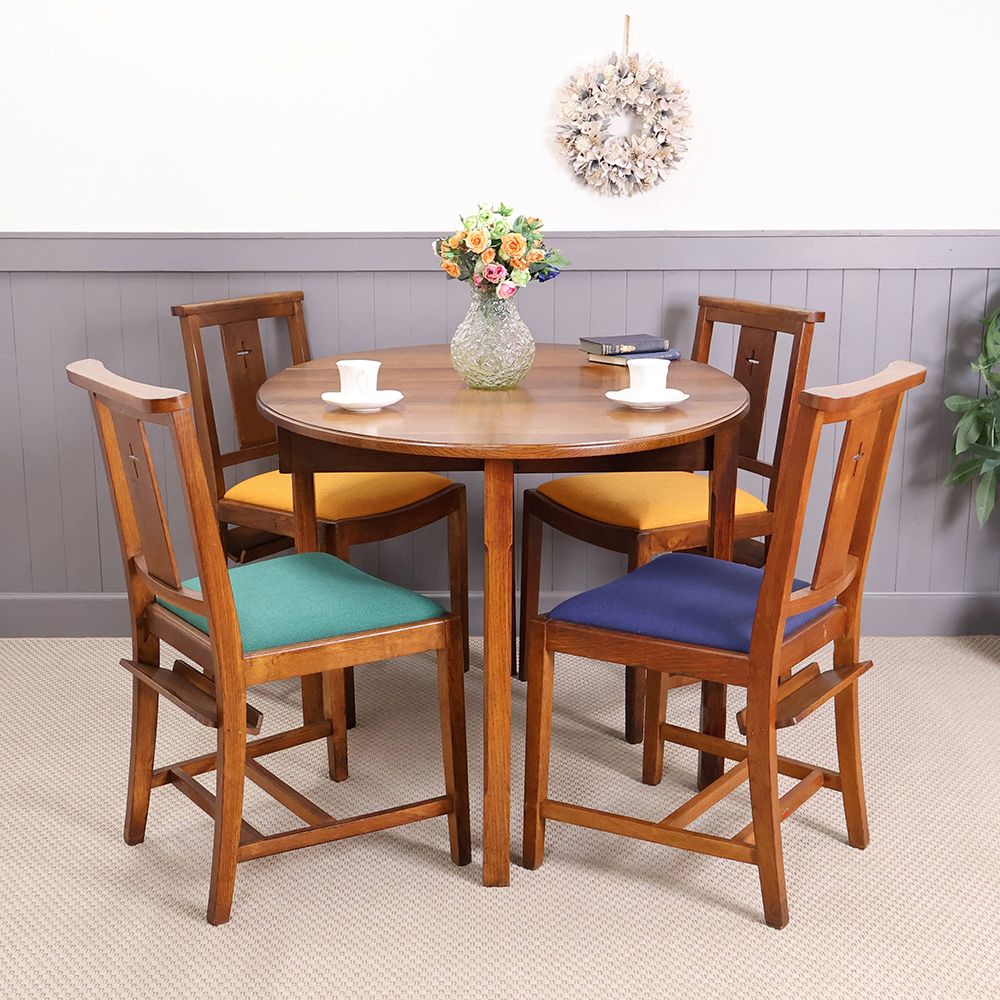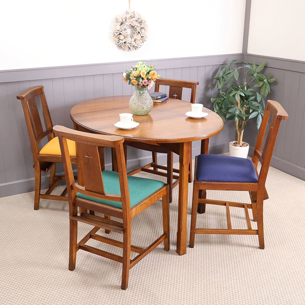 しかし今回入荷したゲートレッグテーブルの脚は4本。正直言うと「物足りないんじゃない?」なんて思ったのだけど、実際に椅子を並べてみて「なるほど!」と納得しました。