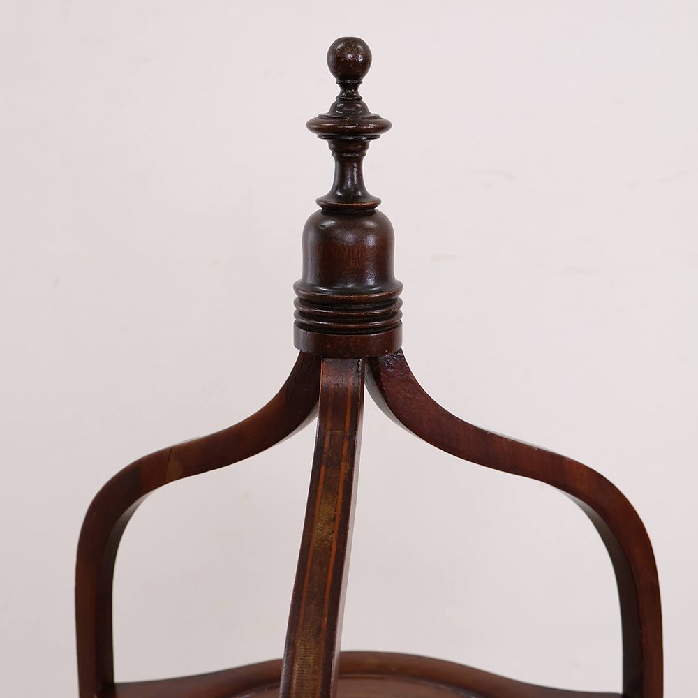 支柱はガーデン用のオベリスクを思わせる優雅な形で、象嵌細工の繊細なラインがあしらわれたオシャレなアンティークです。