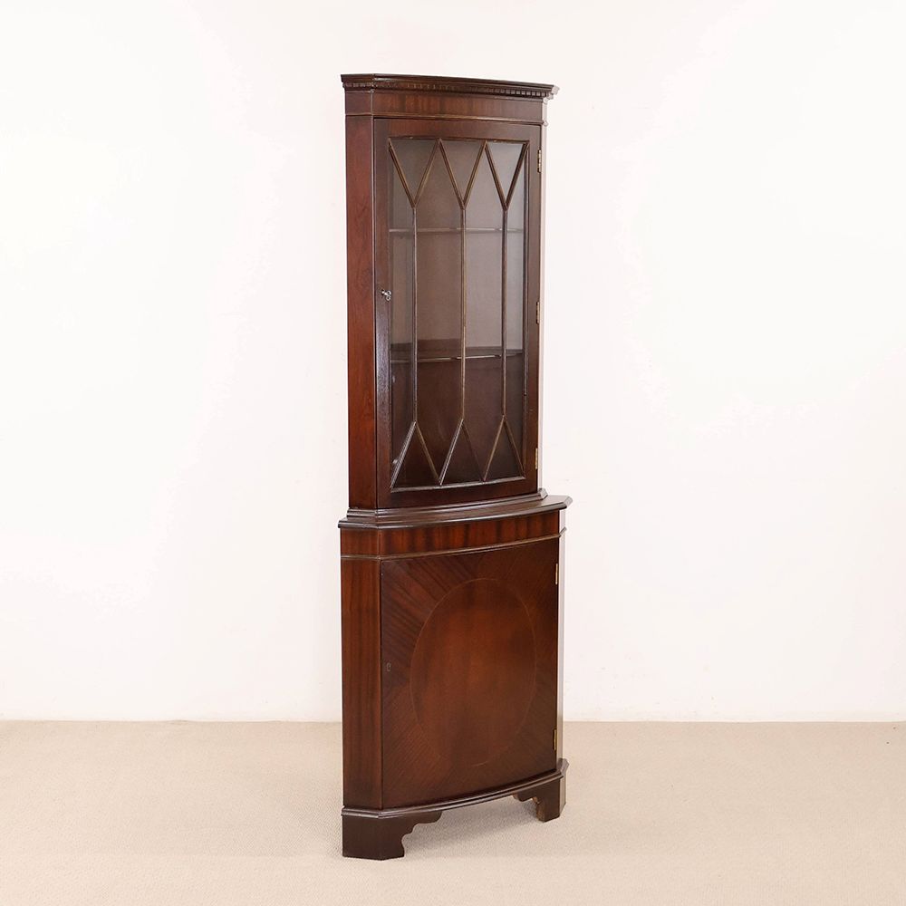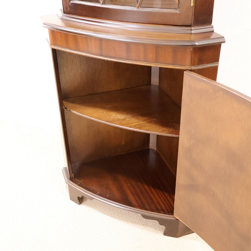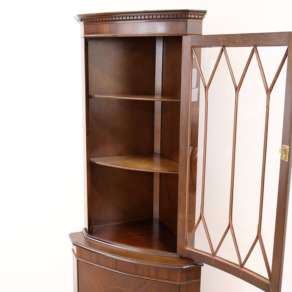 前面に柔らかなカーブをあしらったシックなヴィンテージ・コーナーキャビネットです。