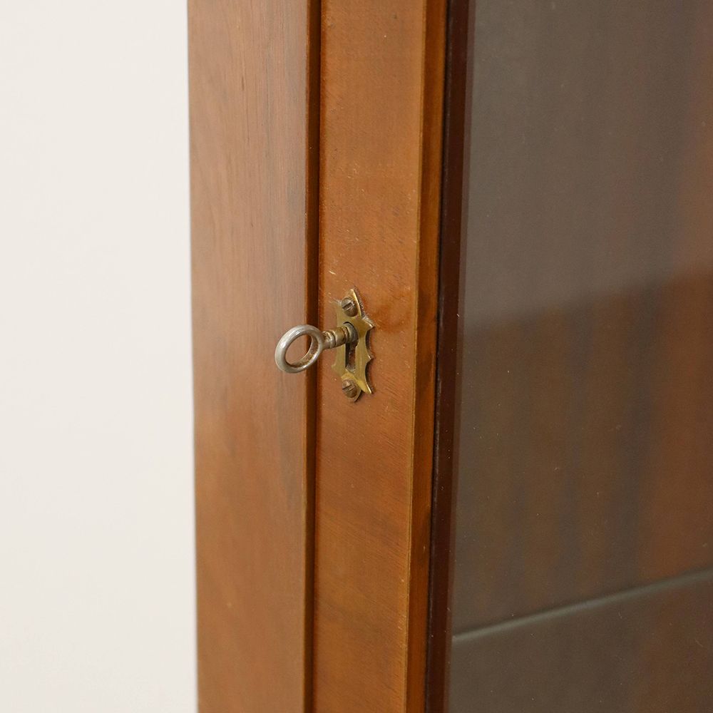 ガラス扉のシックなキャビネットなのだけど、高さは115センチと比較的コンパクト。ウォールナットの上質感や高級感も上品で、優しい佇まいです。