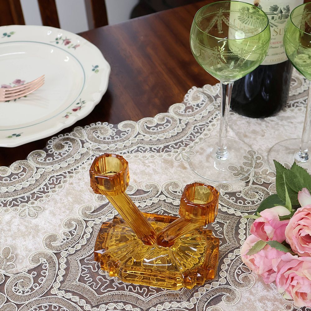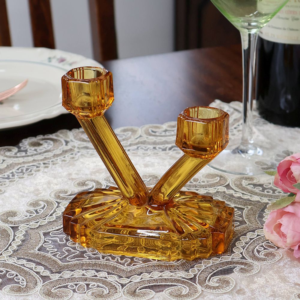 個性的な形のキャンドルスタンドは、ミッドセンチュリーの時代に大流行したオシャレなアンバーカラー。
