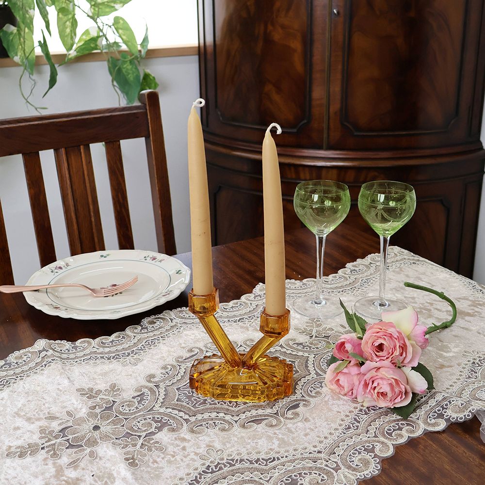 光に透ける琥珀色のキャンドルスタンドを眺めるたびに、オシャレな時代に思いを寄せる今日この頃です。