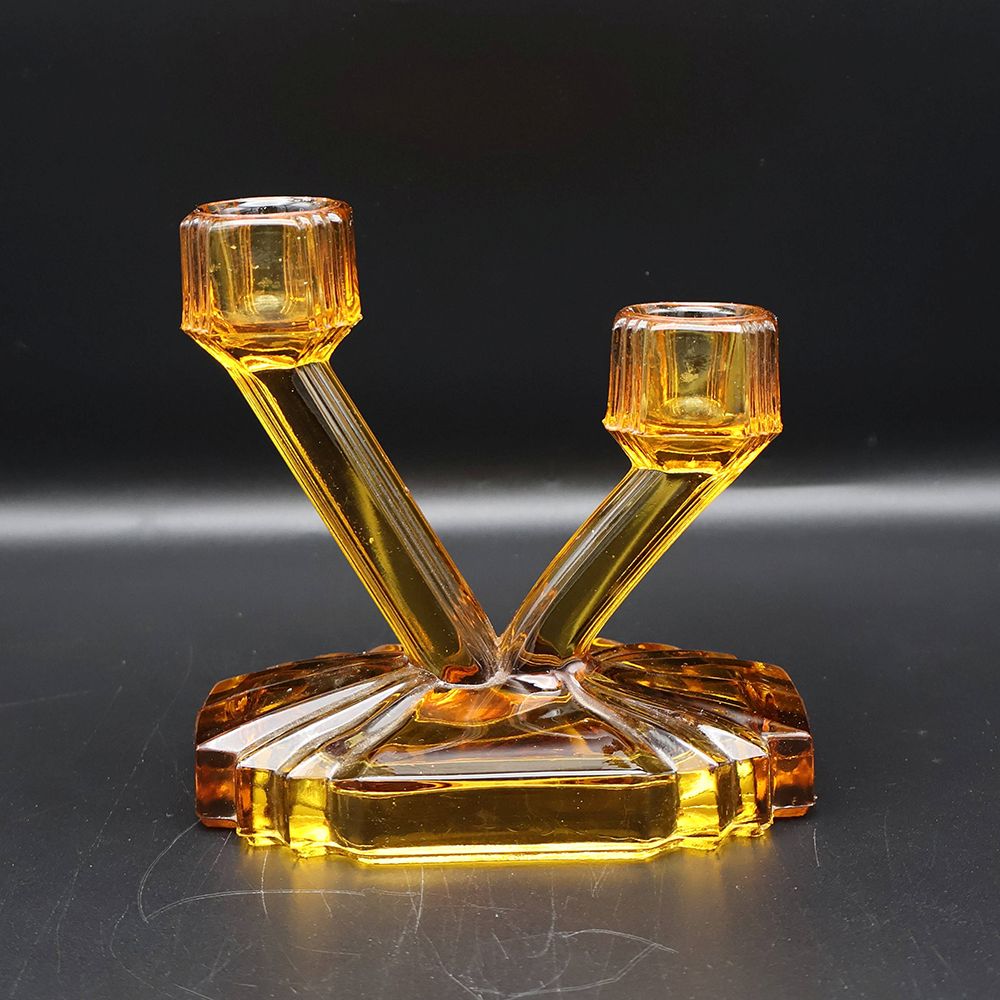 造形のユニークさに加えて、時代が愛したアンバーカラーも楽しみたいガラスキャンドルスタンドです。