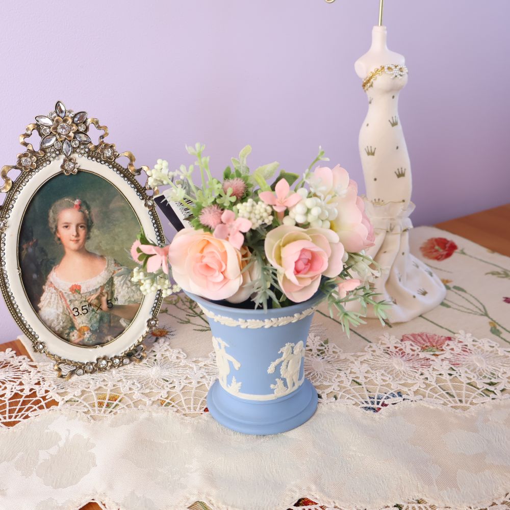 マットな質感に、水色と白のコントラストがロマンティックなウェッジウッドのジャスパーウェアです。
