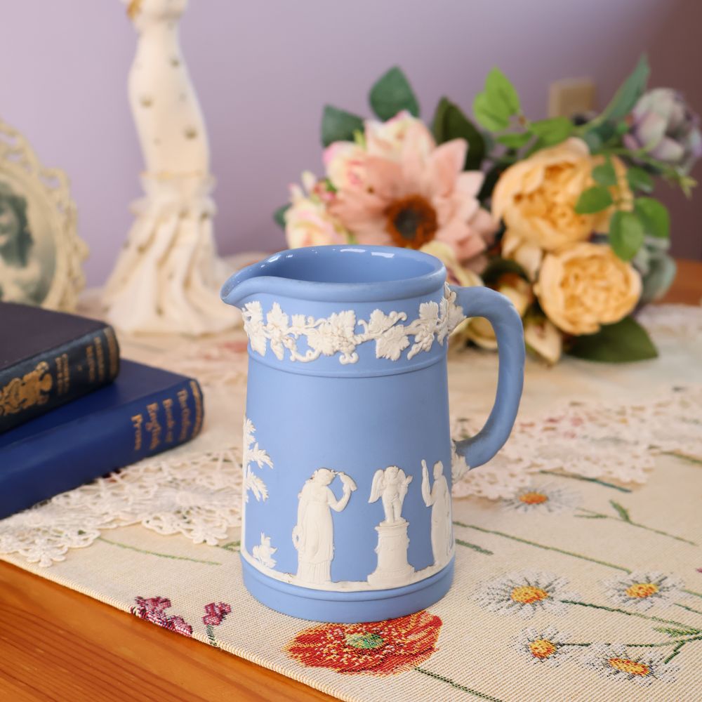マットな質感に、水色と白のコントラストがロマンティックなウェッジウッドのジャスパーウェアです。