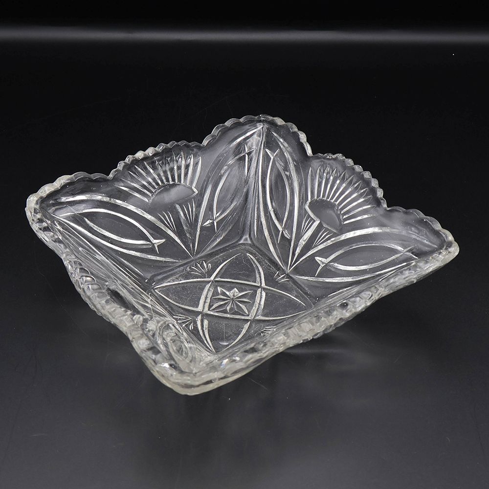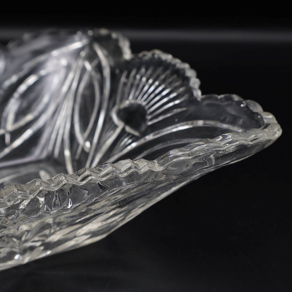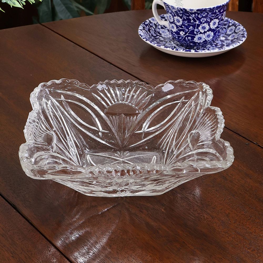 幅18.5センチのガラスプレートは、スカラップ型の縁取りが可愛らしいヴィンテージ。