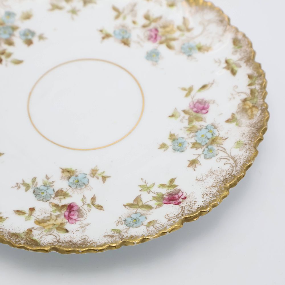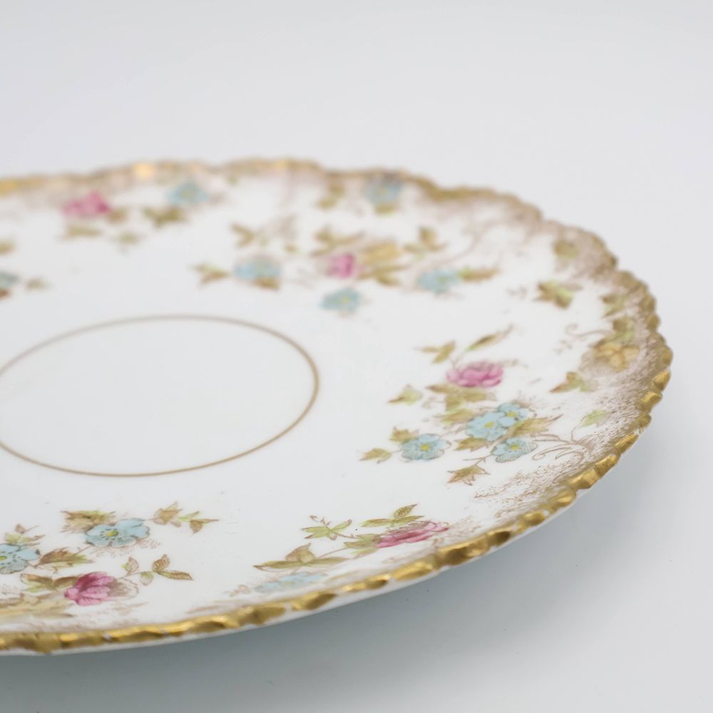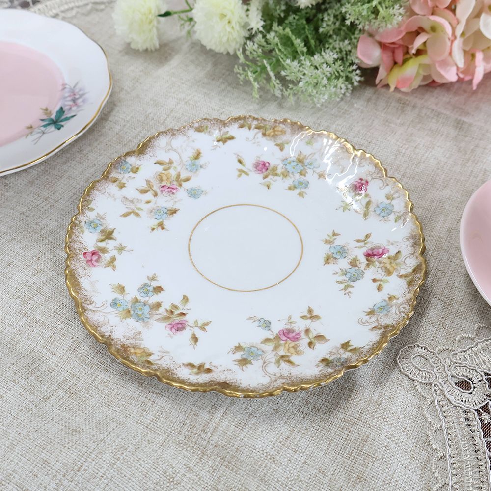 繊細な小花模様が咲きこぼれるように広がる、美しいアンティークのケーキプレートが入荷いたしました。