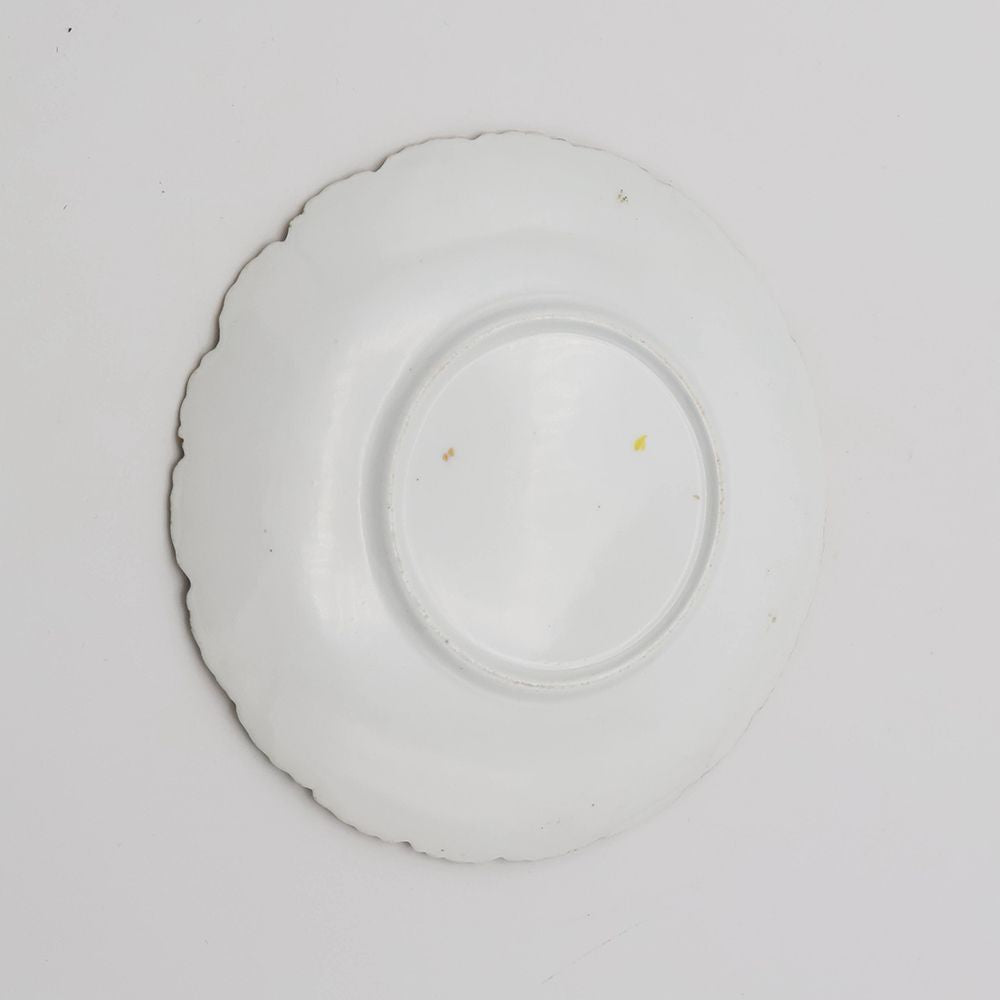 やわらかく波打つスカラップの縁取りには、繊細な金彩が施され、角度によってやさしく光を受け止めます。