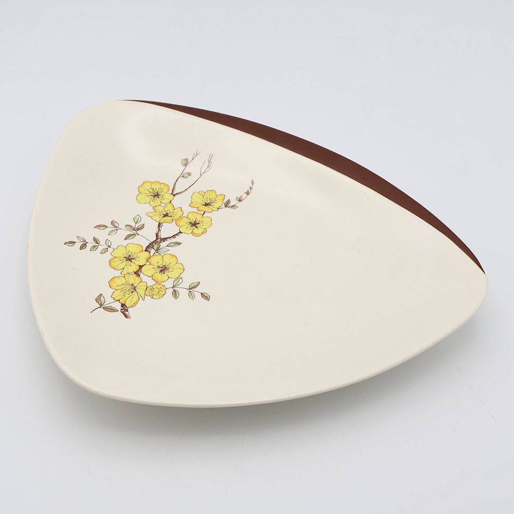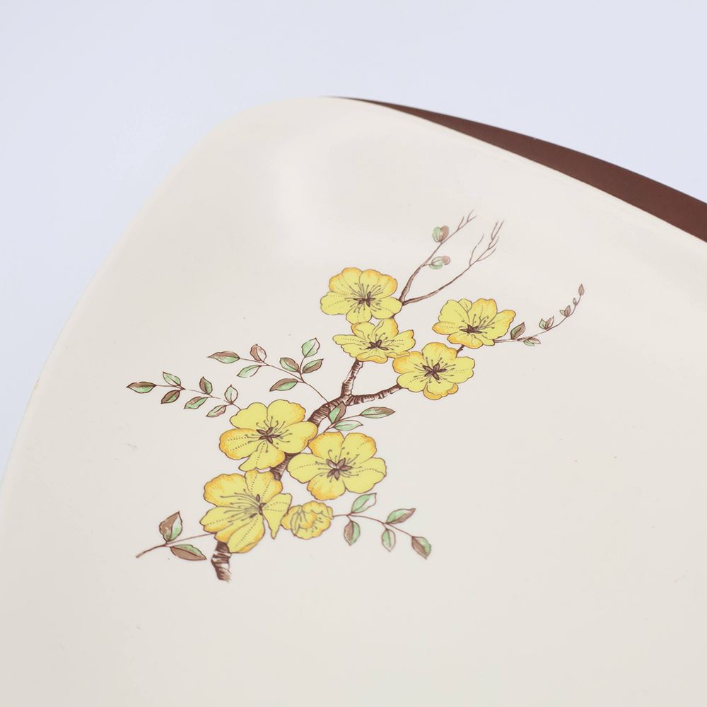こちらはCARLTONWARE(カールトンウェア)のTRADE MARKシリーズのひとつ、「Mimosa(ミモザ)」です。ぽってりとした素朴なフォルムと、手描きのようなぬくもりある花模様が特徴の、美しい一枚です。