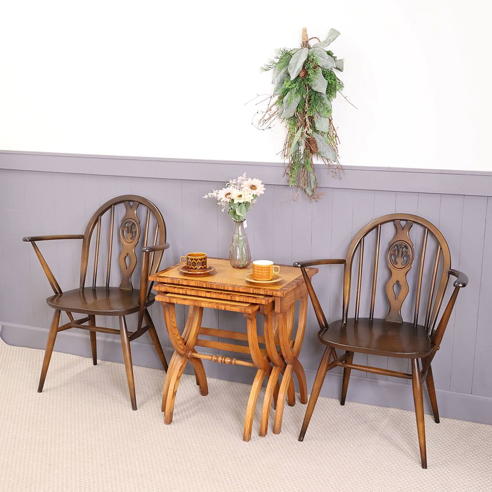 ウィンザーチェアの伝統を受け継ぎつつ、スッキリと形を整えられたアーコールのチェアは、味わいのある色の濃淡に温かみのあるビンテージ。