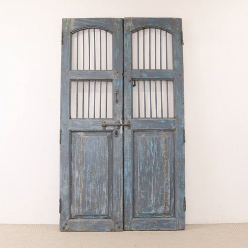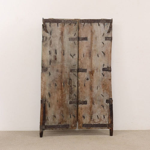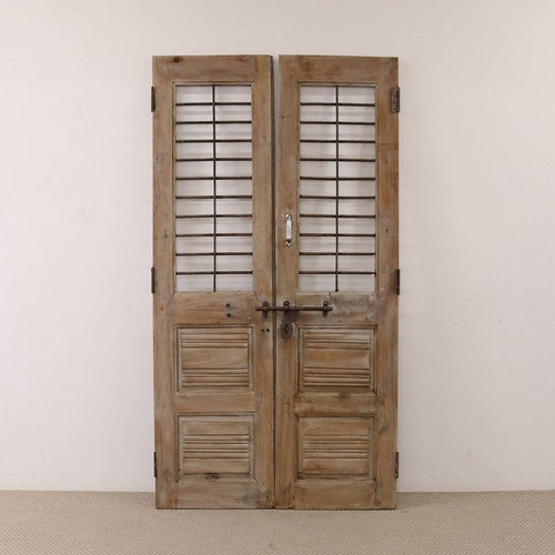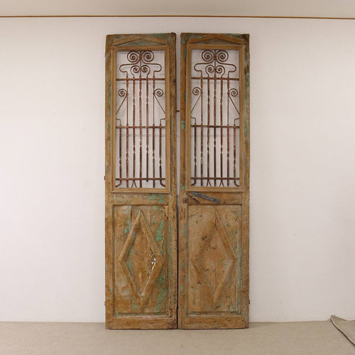 幾何学模様の大きなステンドグラスが印象的♪ 英国アンティーク ステンドグラスドア VC48-085