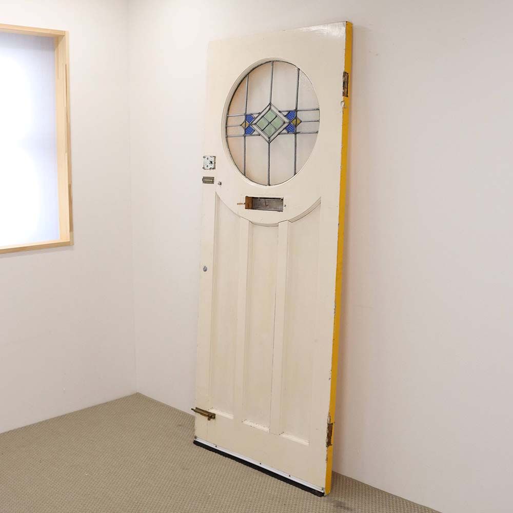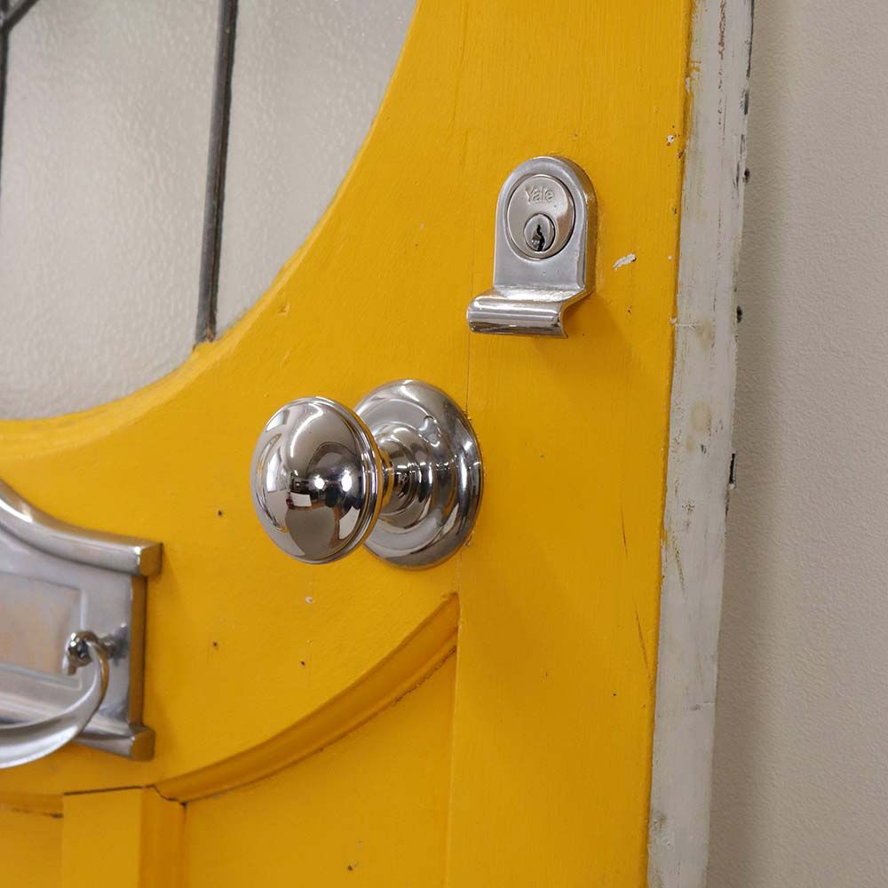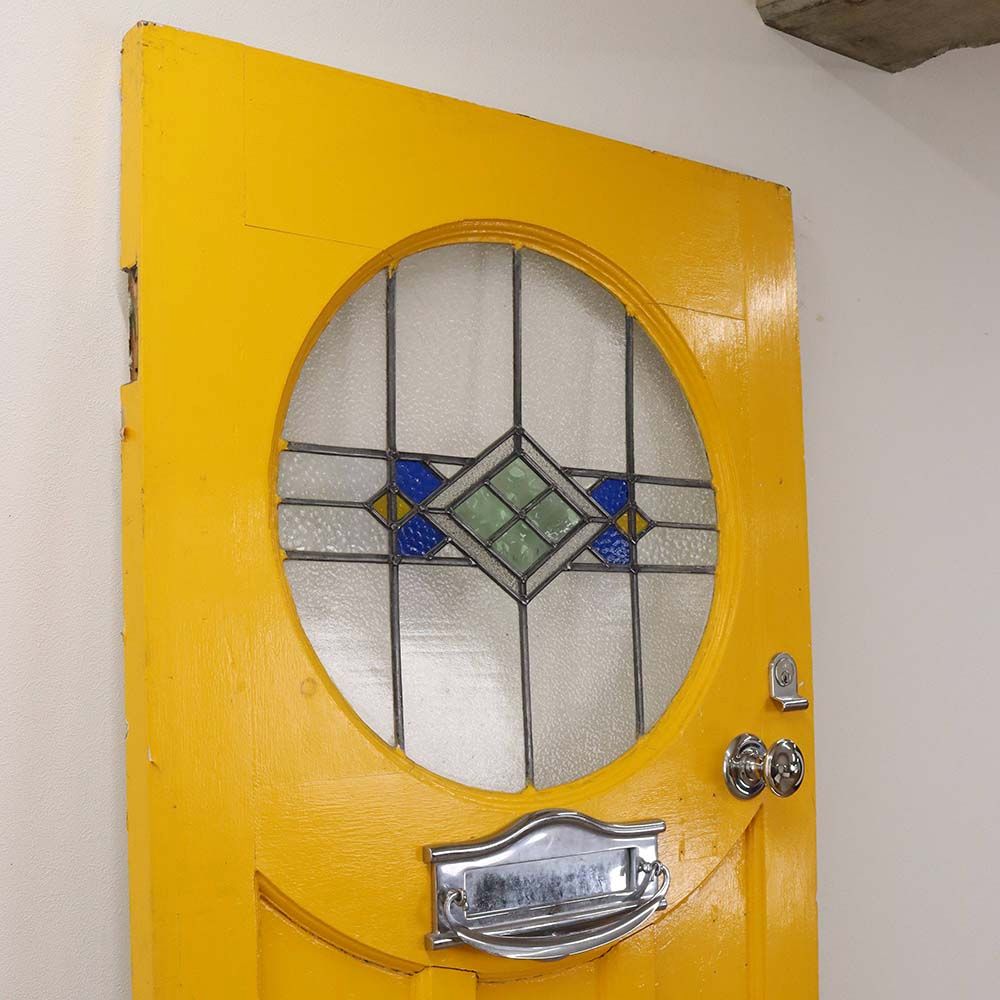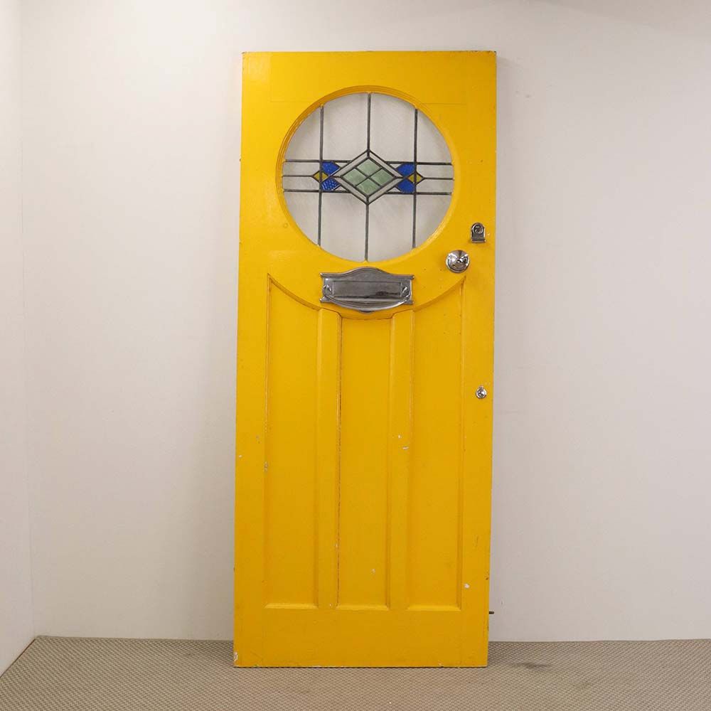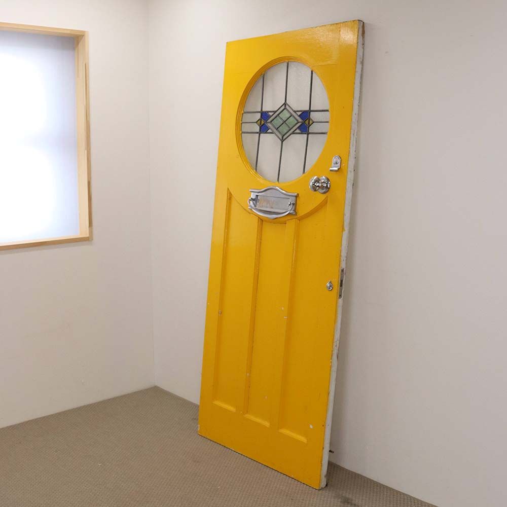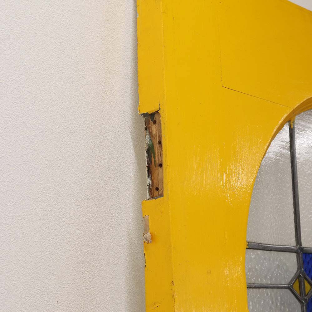 鮮やかなイエローペイントの英国アンティークステンドグラスドア VC109-132