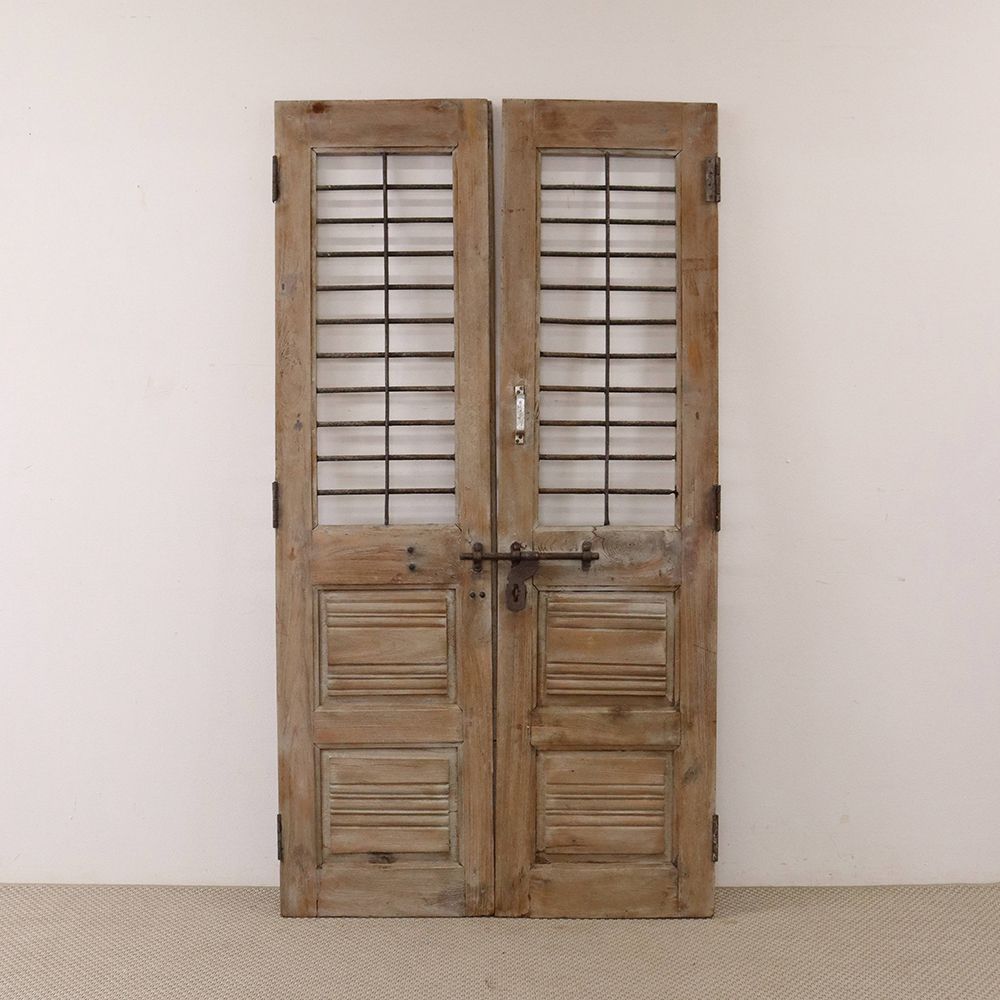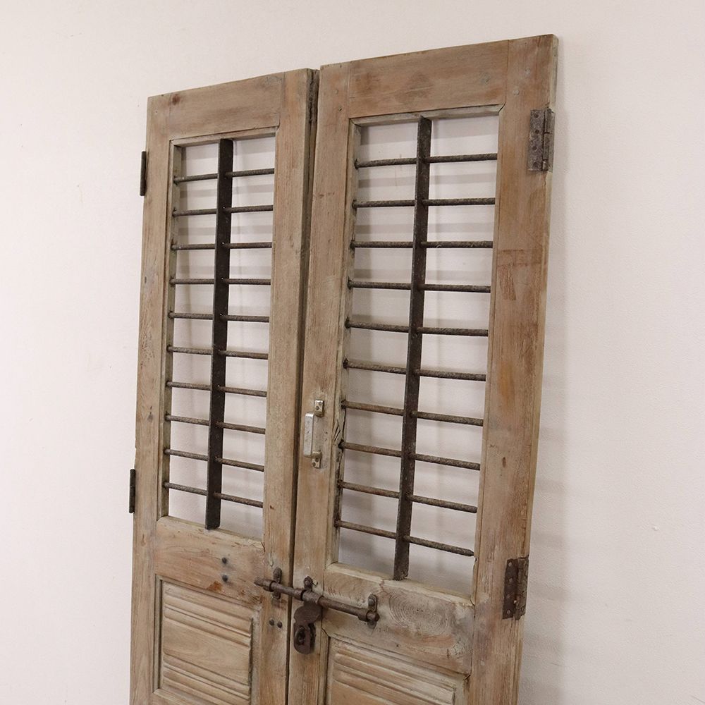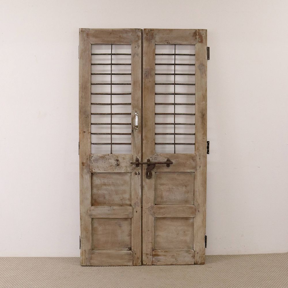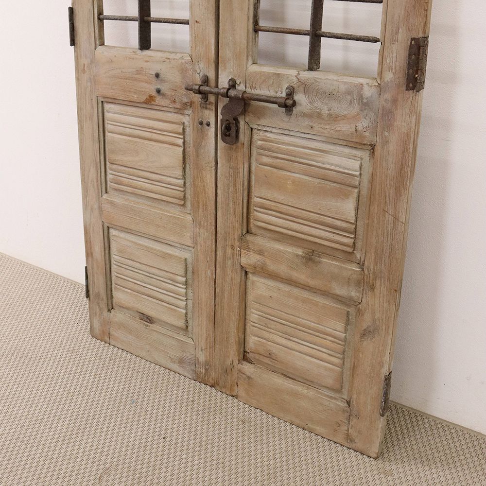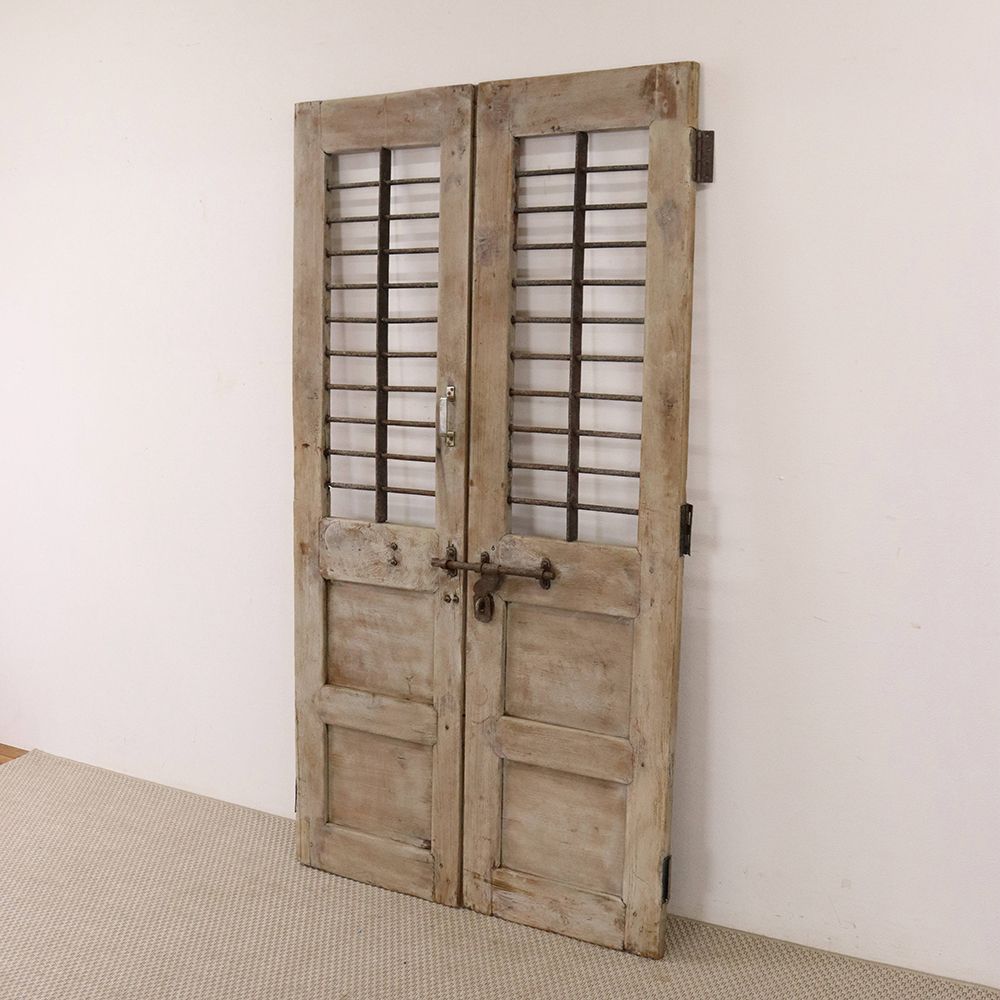 シャビ―な木肌とアイアン格子がカッコいいアンティークアイアンペアドア VC112-069001