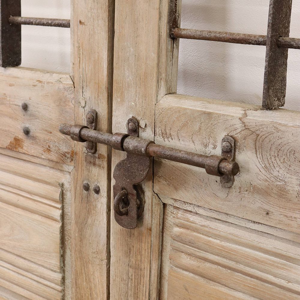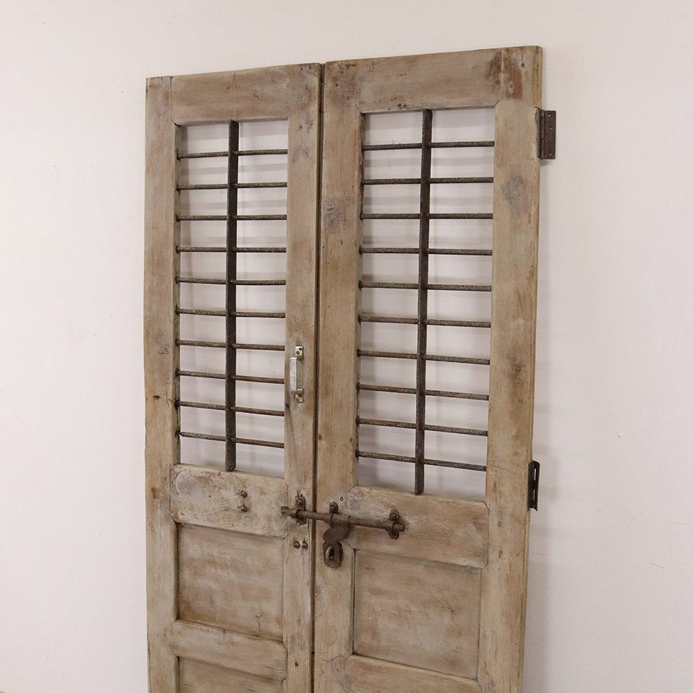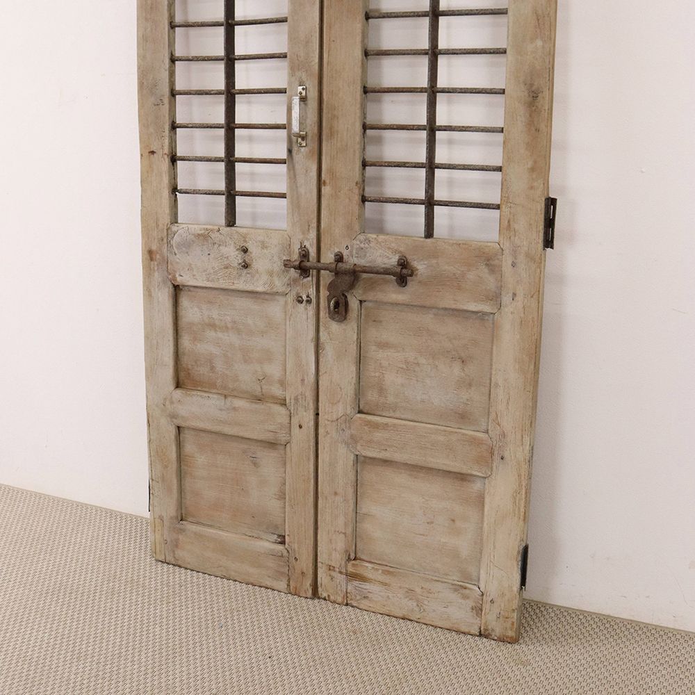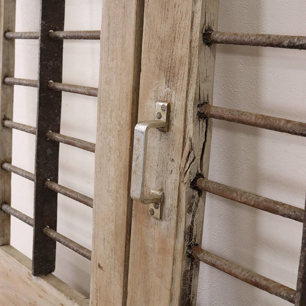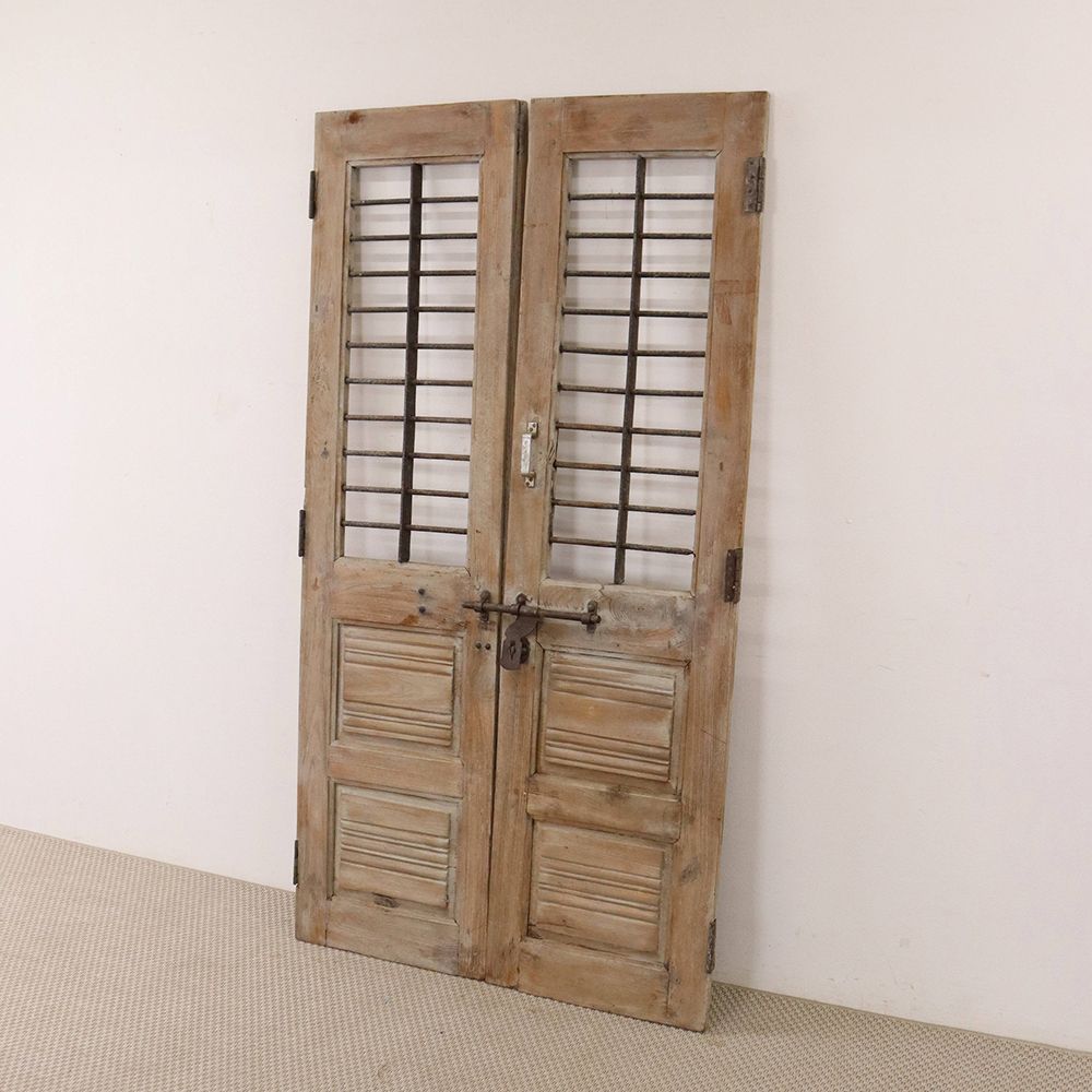 シャビ―な木肌とアイアン格子がカッコいいアンティークアイアンペアドア VC112-069001