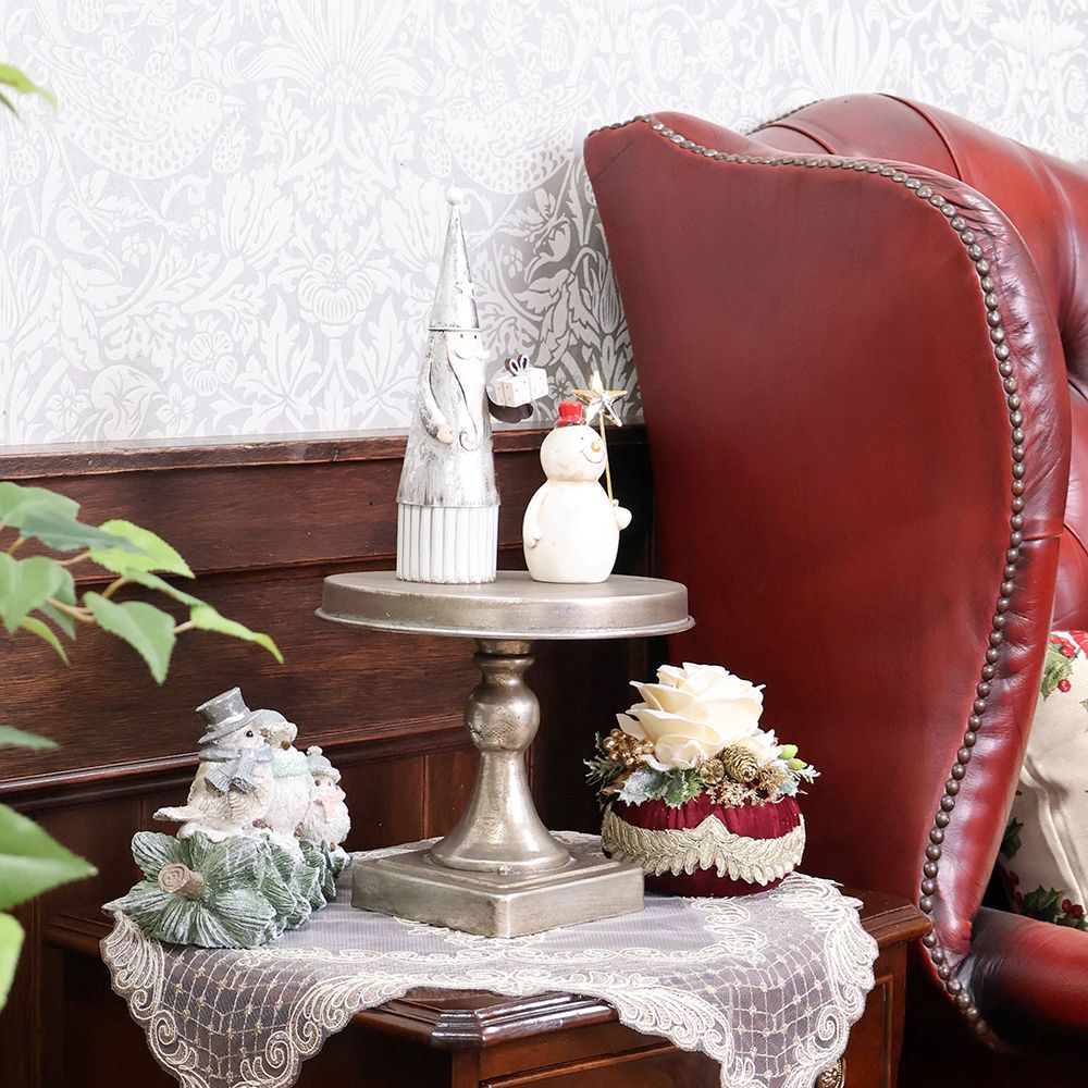 クリスマスといえばツリーにオーナメントを飾って楽しむことを想像しがちですが、実は台座にオブジェをかざるのも素敵なんですよ。お気に入りのレースやクロスを敷いて、自分の目の高さに合わせたコーディネートも楽しむことができます。