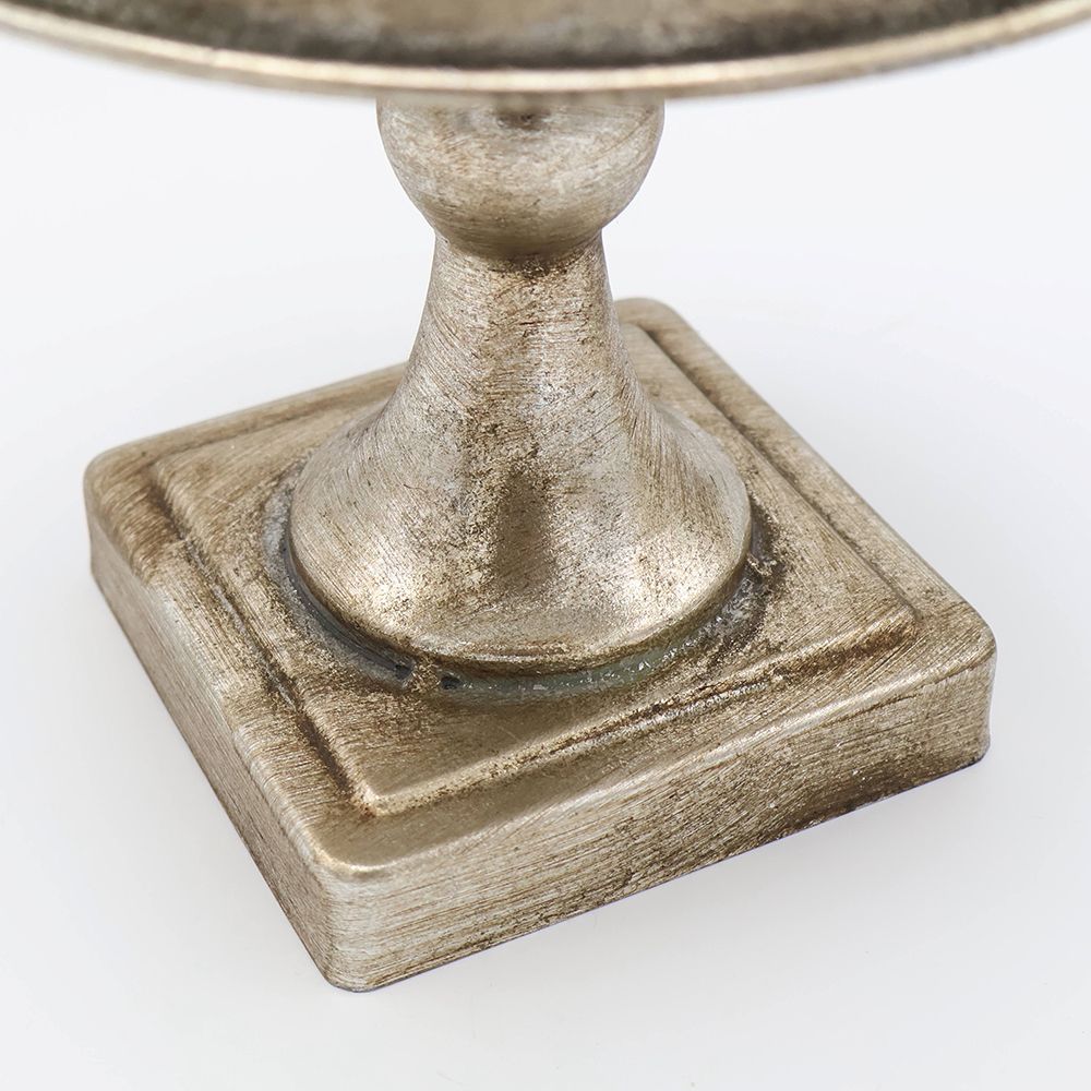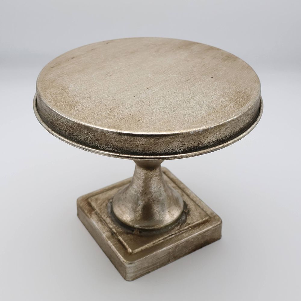 マットなメタリックカラーが落ち着いた印象で、小さなオーナメントやアロマキャンドルを飾るともっと素敵に輝くんです。高さのある台座が、何気ないものにも飾る楽しさを添えてくれます。